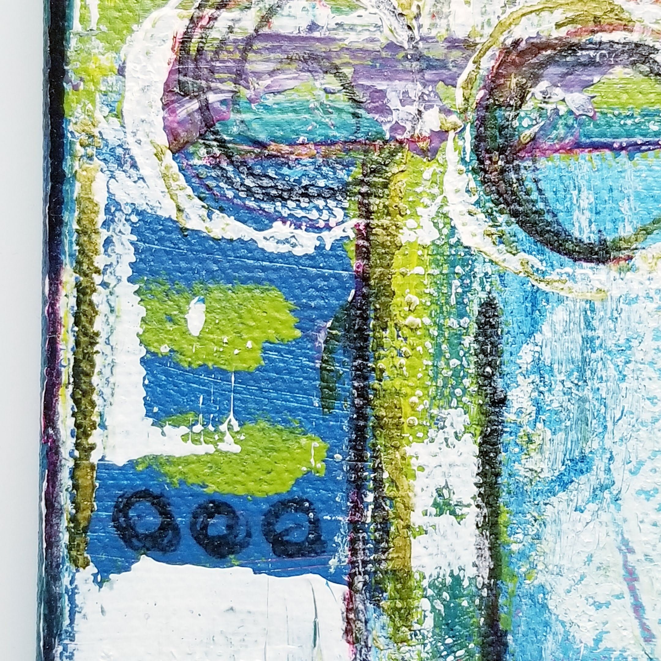 Mini Abstract Art: Navy & Green Colorful Collage (4x4 inches)