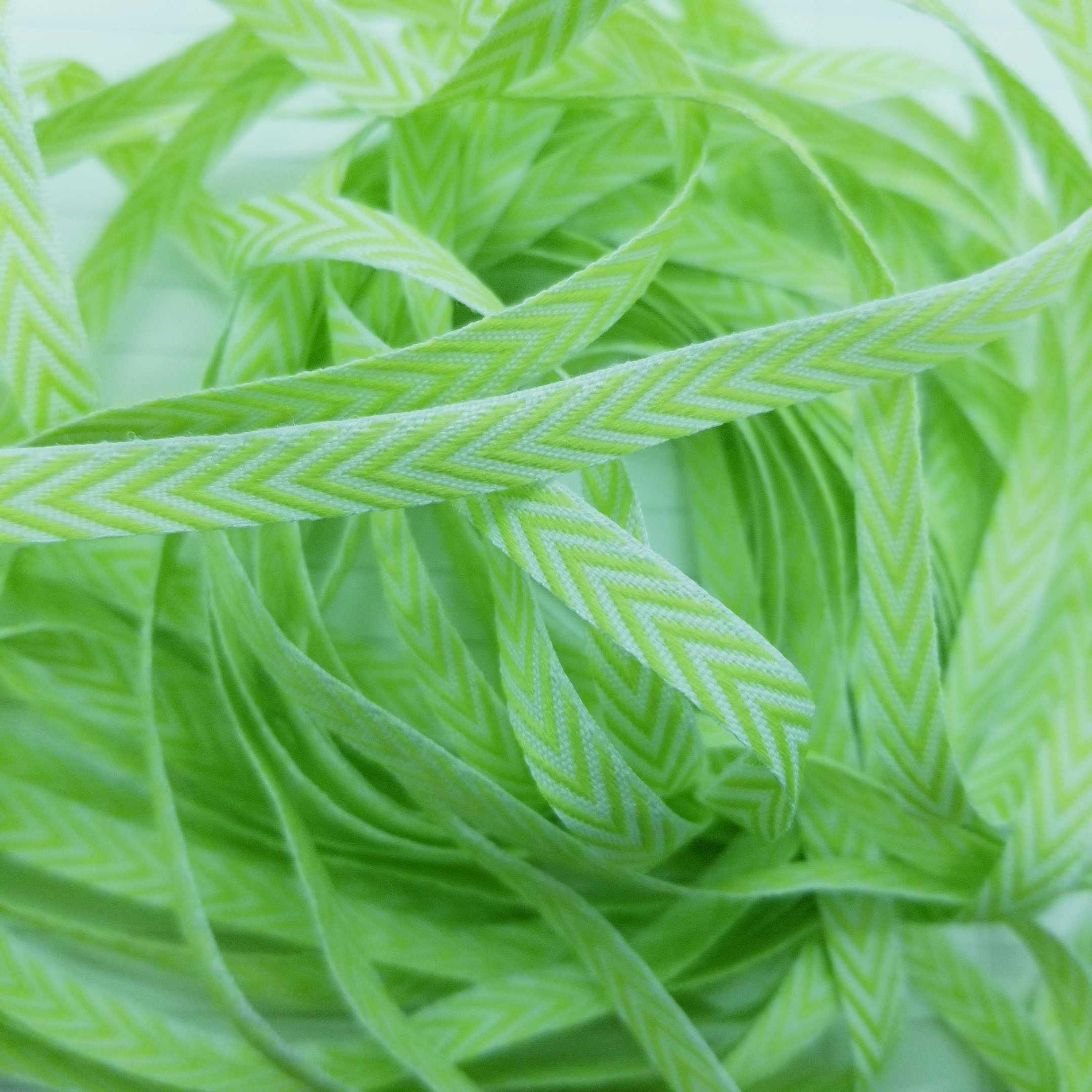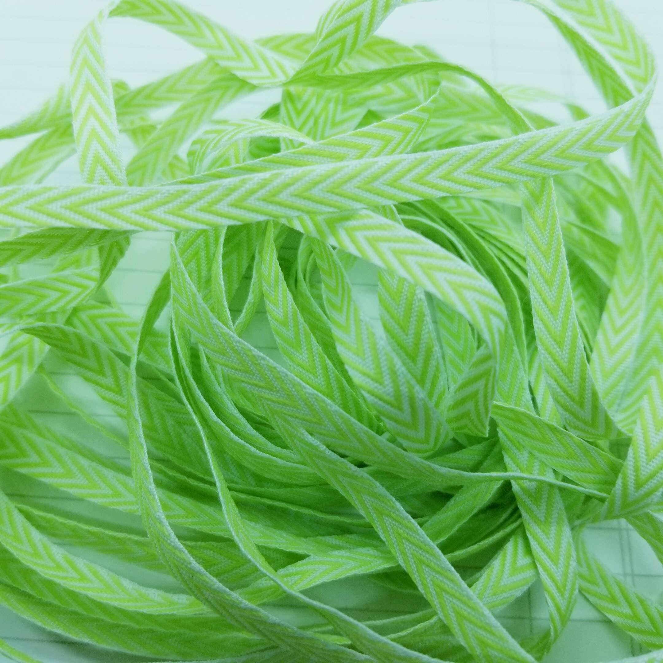 5 Yard Package 1/4 inch green and white chevron polyester chevron ribbon.