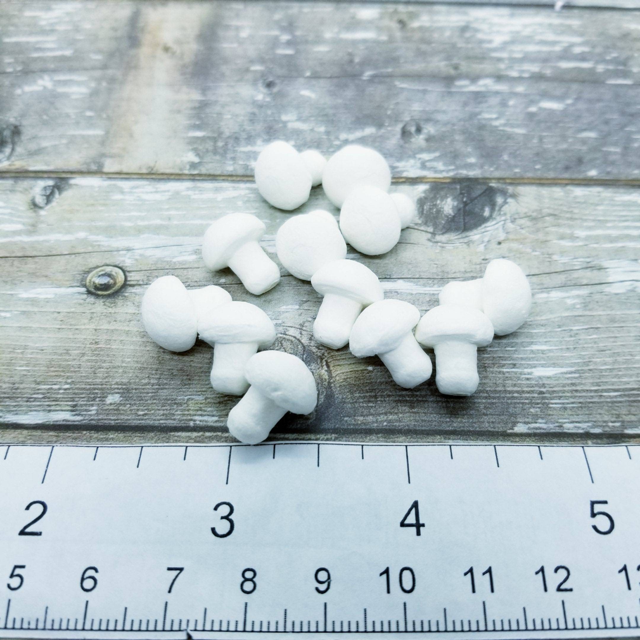 Miniature spun cotton mushrooms- 14 MM mushrooms. Ready to paint or incorporate into your artwork.