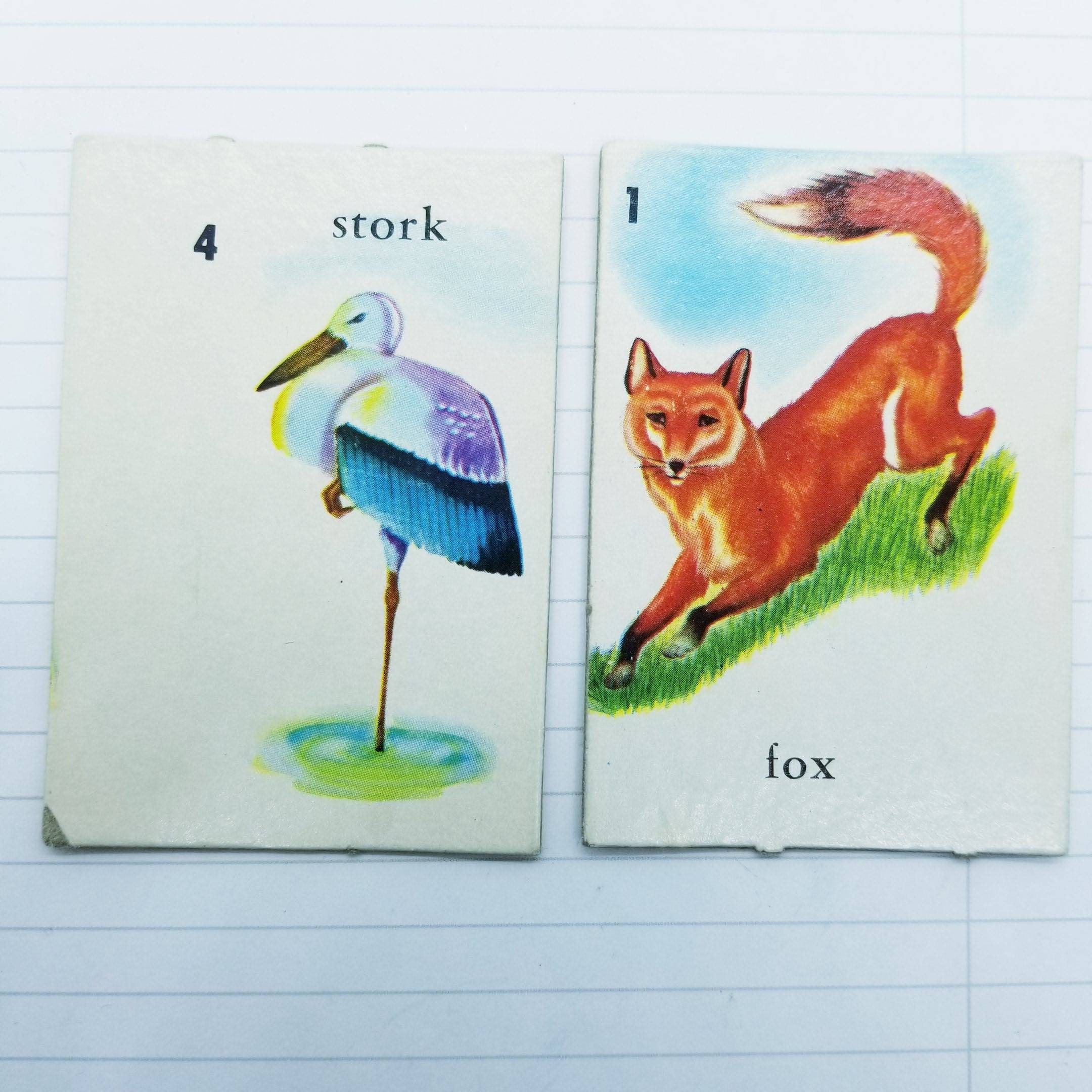 Vintage Kids Flash Cards/ Game Cards with animals on them, each pack contains 2 cards, please look at the photos carefully to pick your pack.