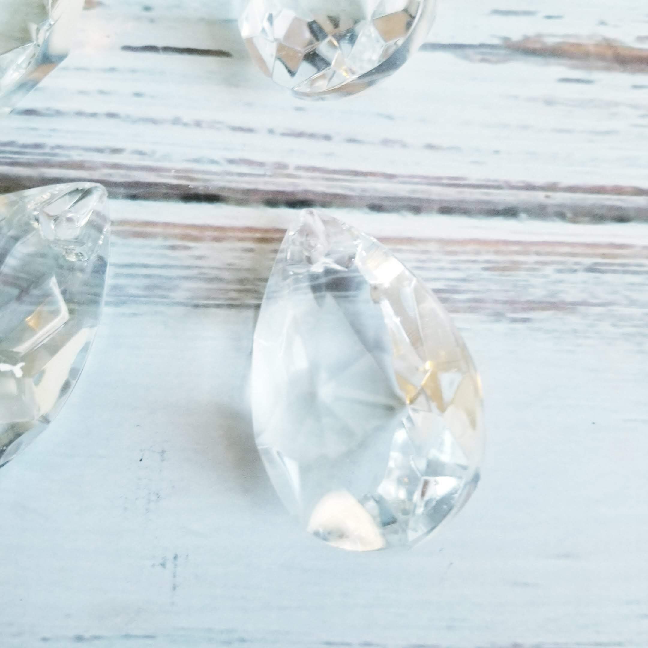 Pack of 4 vintage chandelier crystals, approximately 2 inches long and 1 1/4 inch thick. In good used vintage condition.