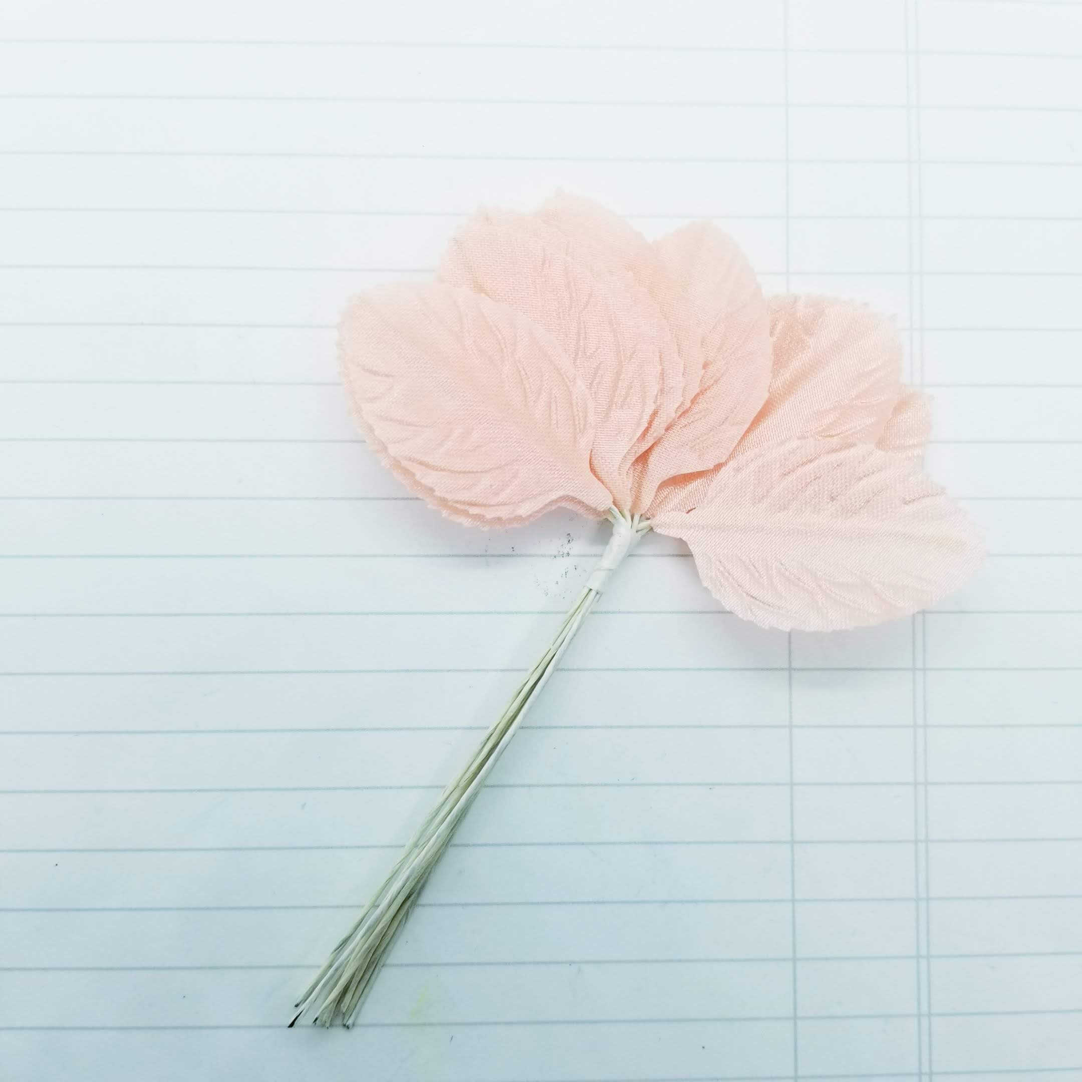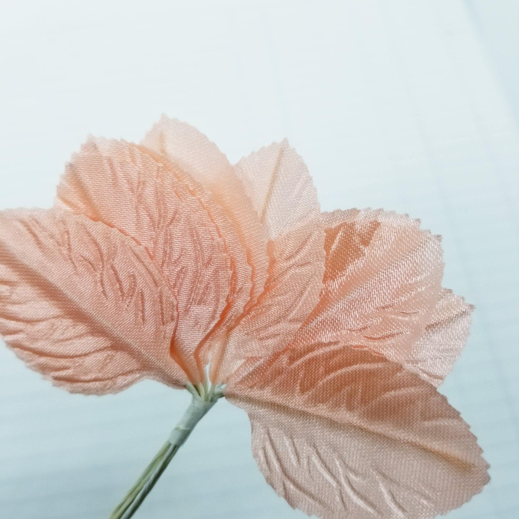 Coral Pink spray of satin leaves, 12 in a package, wired, ready for your wedding, cottagecore artwork and creations.
