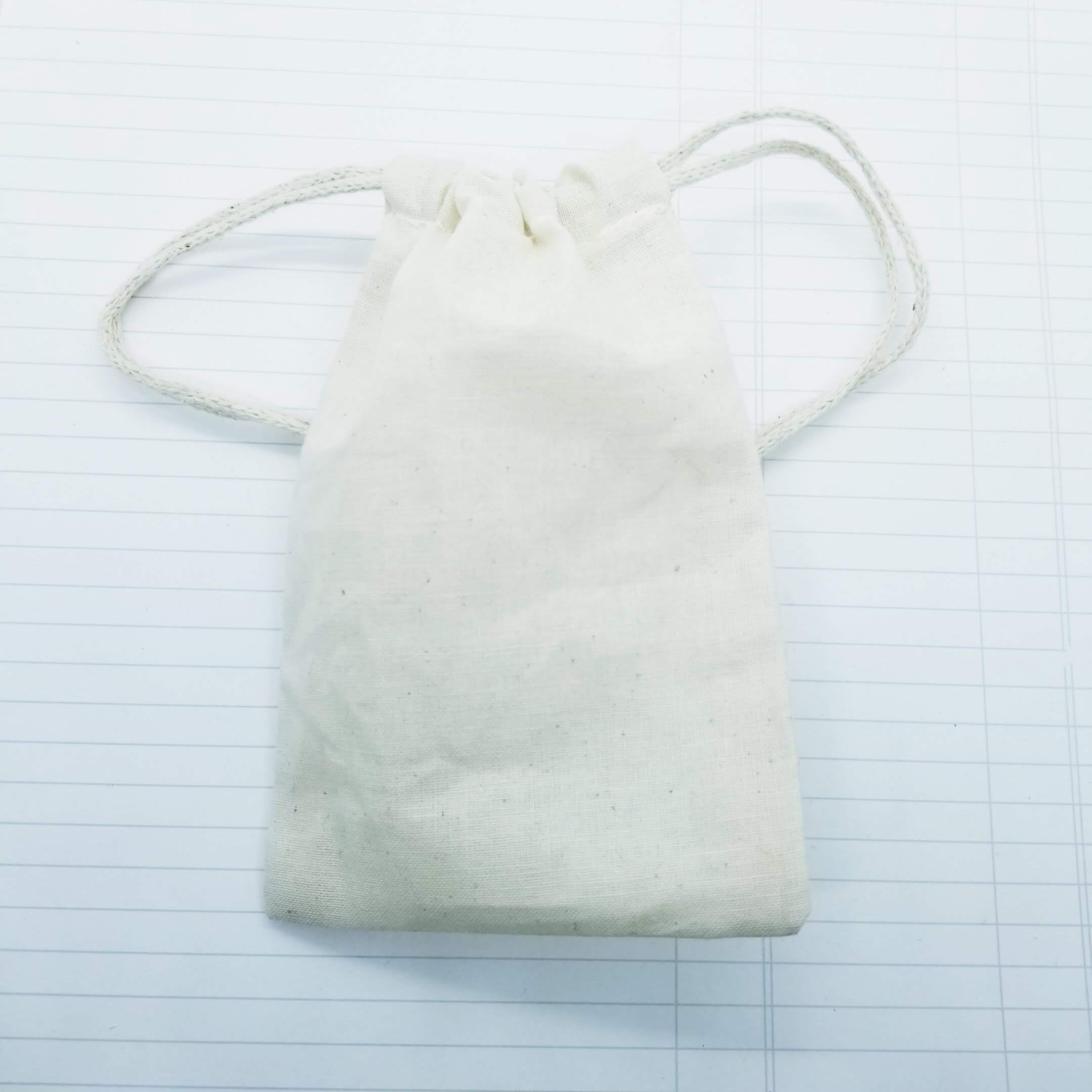 Reusable cotton muslin bags, drawstring opening.