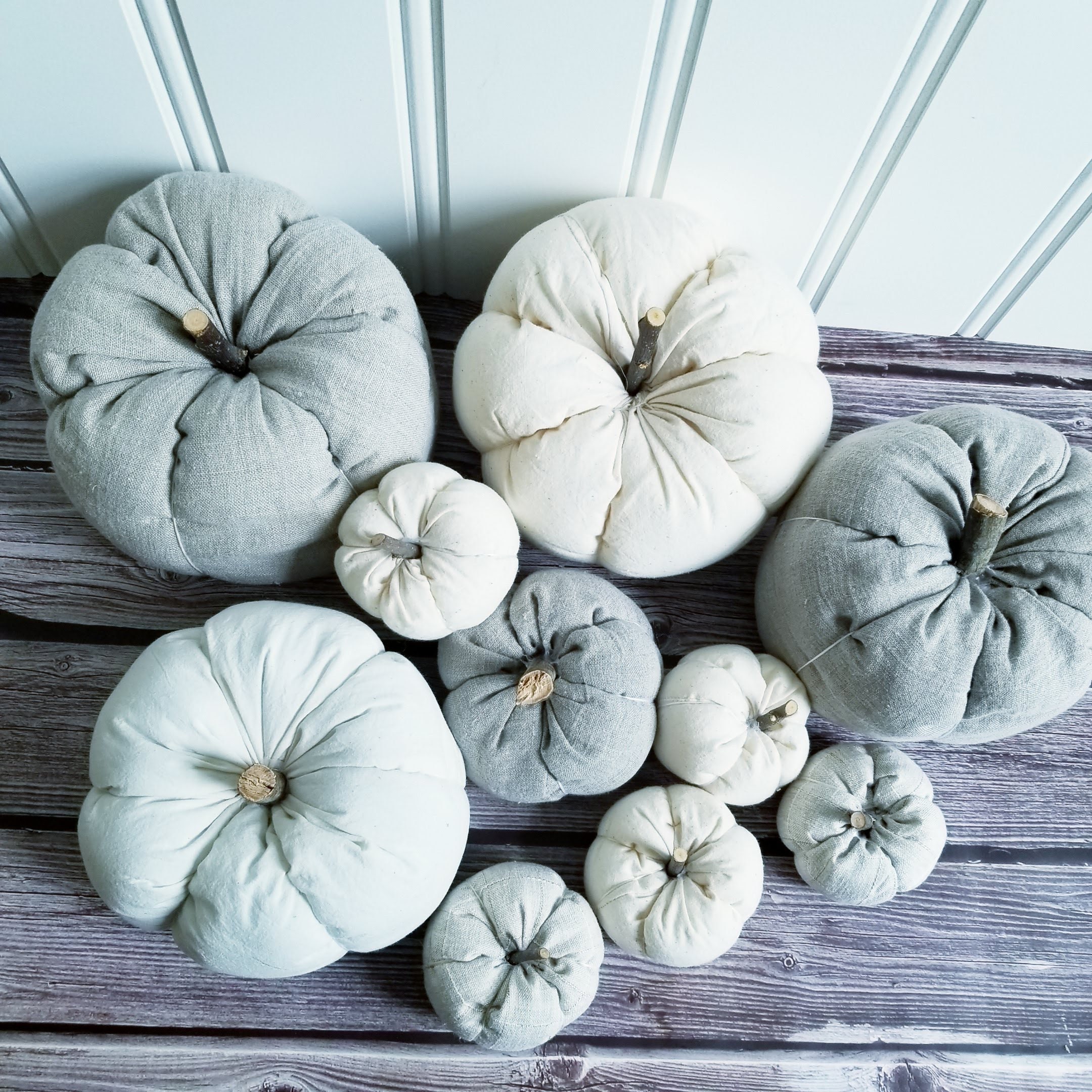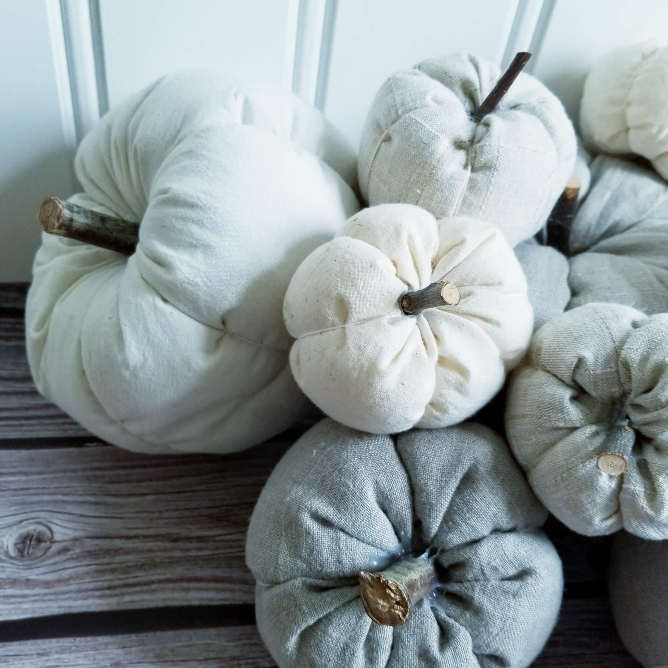 Collection of handmade linen and cotton pumpkins. The last for a while, I've been making these for several years and I'm taking a little break from them.