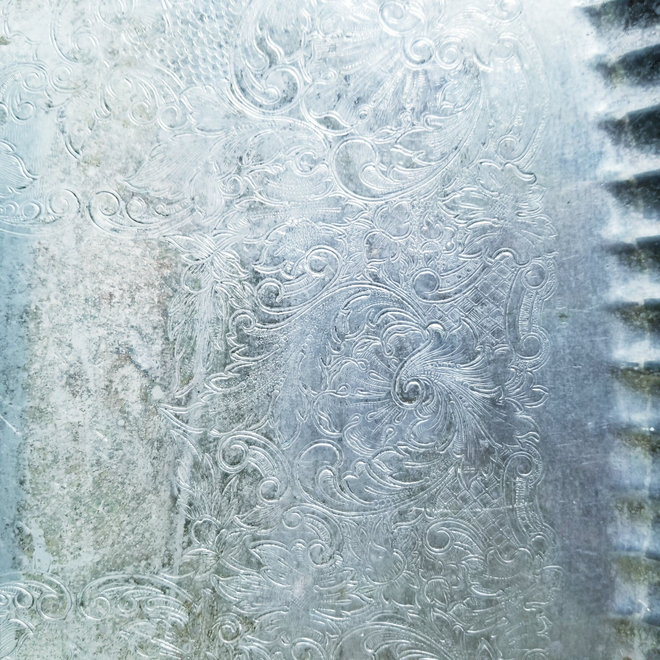 Gorgeous vintage silverplated ornate tray with handles, perfect for your food blog or flat lay photos. This is a hard one for me to let go.