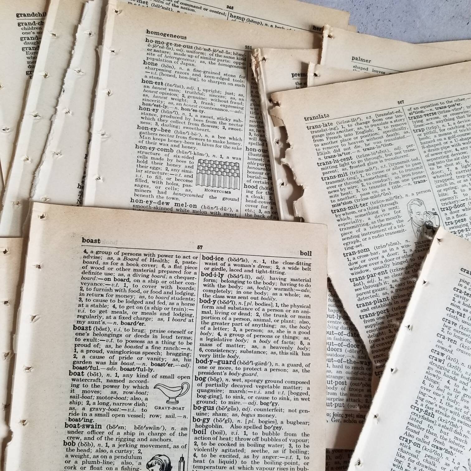 Great dictionary book pages sheets, pages are 6 inches x 8 1/2 inches.