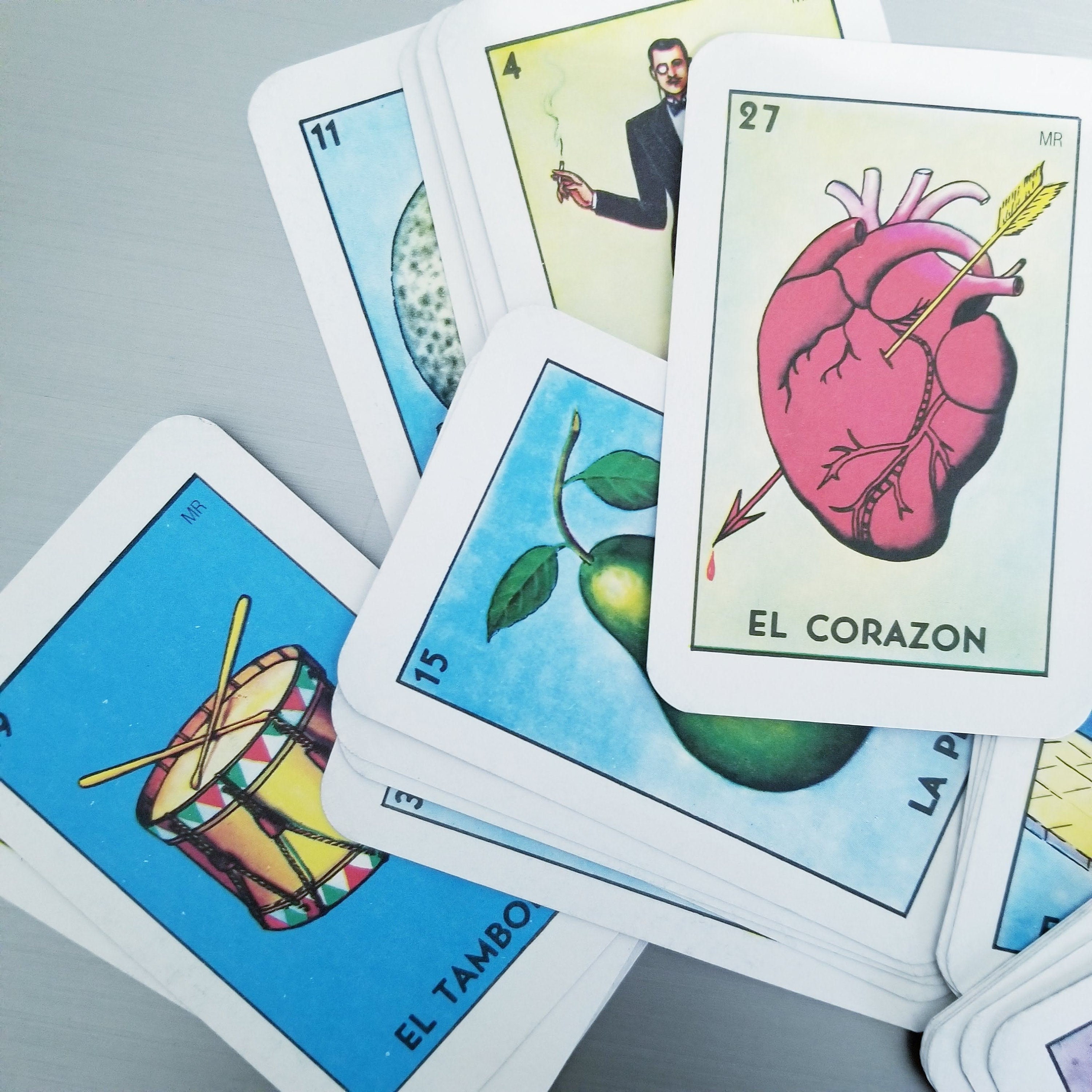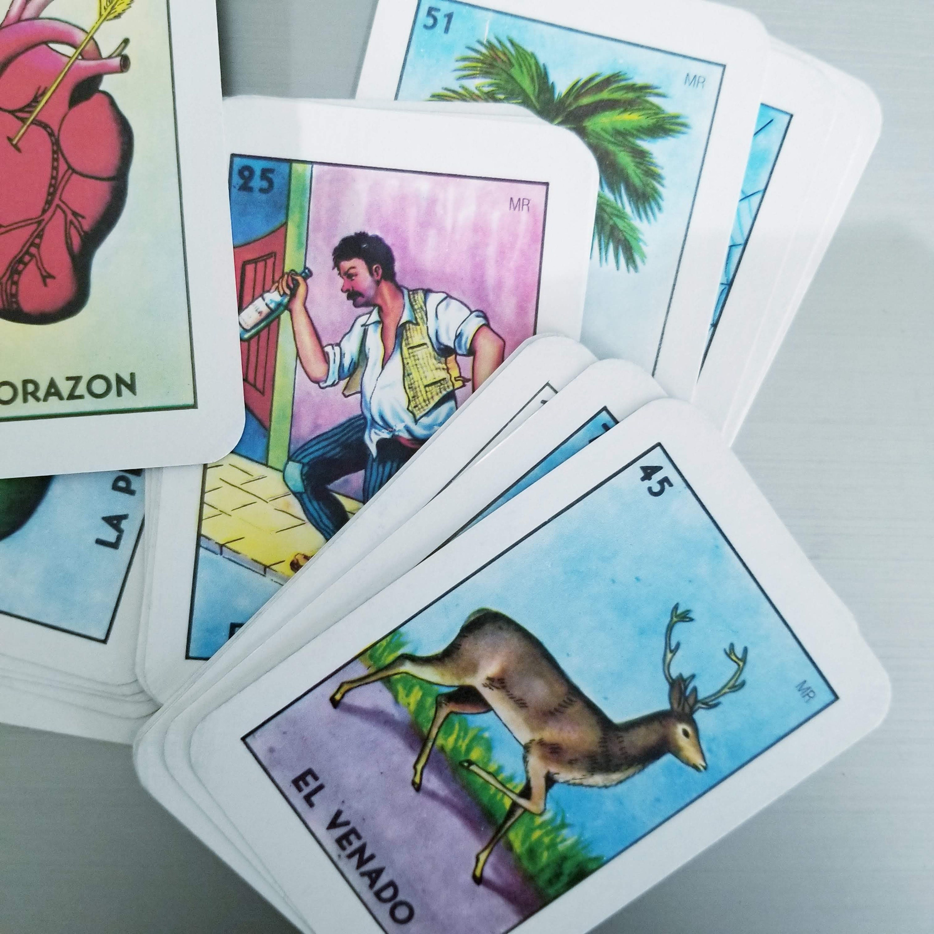 20 random Mexican Loteria Lotto playing cards.
