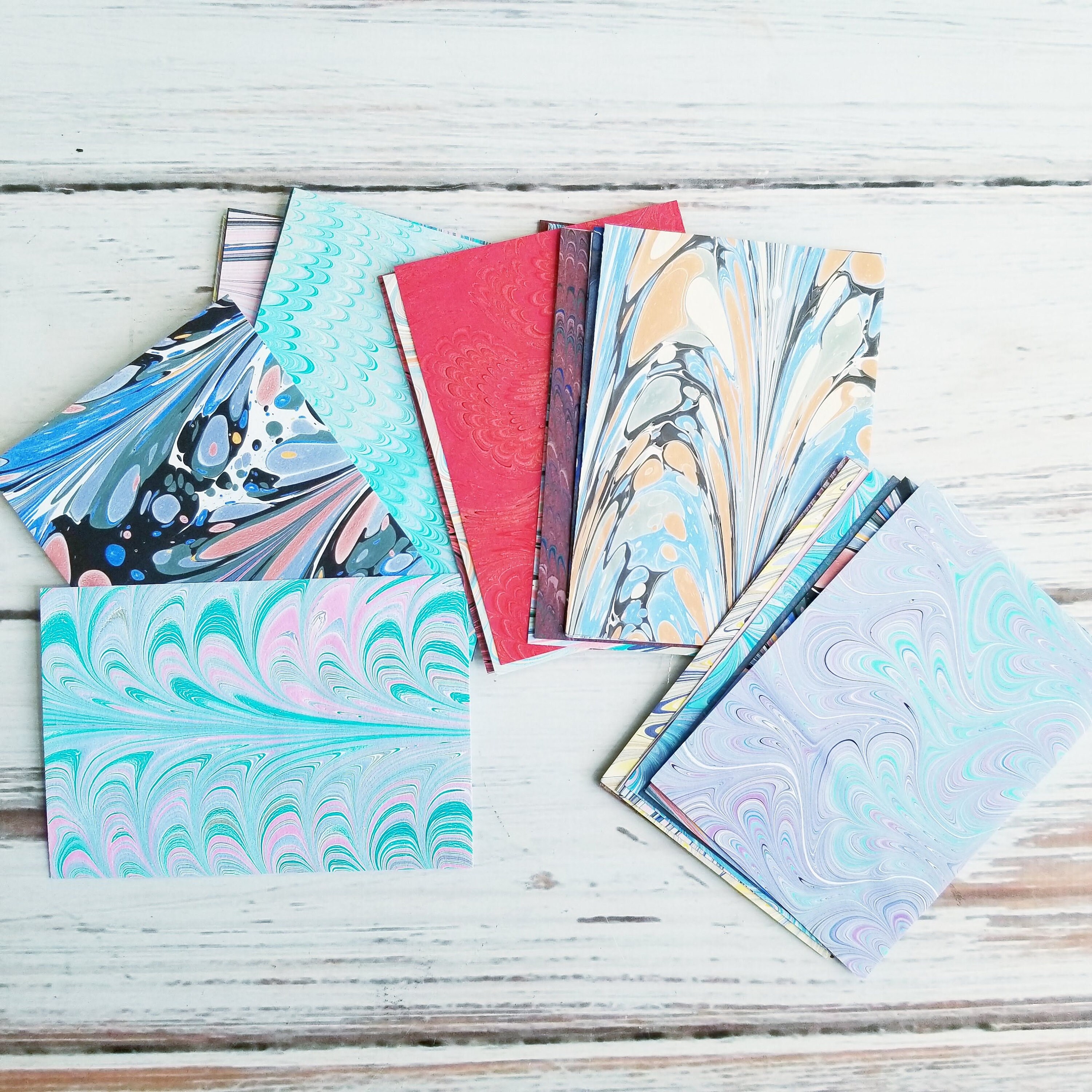 Pack of 25+ text weight paper that has been handmarbled, various patterns and colors, there may be a repeat in the packs of ACEO or ATC sizes. I recommend gluing these to a cardstock base.