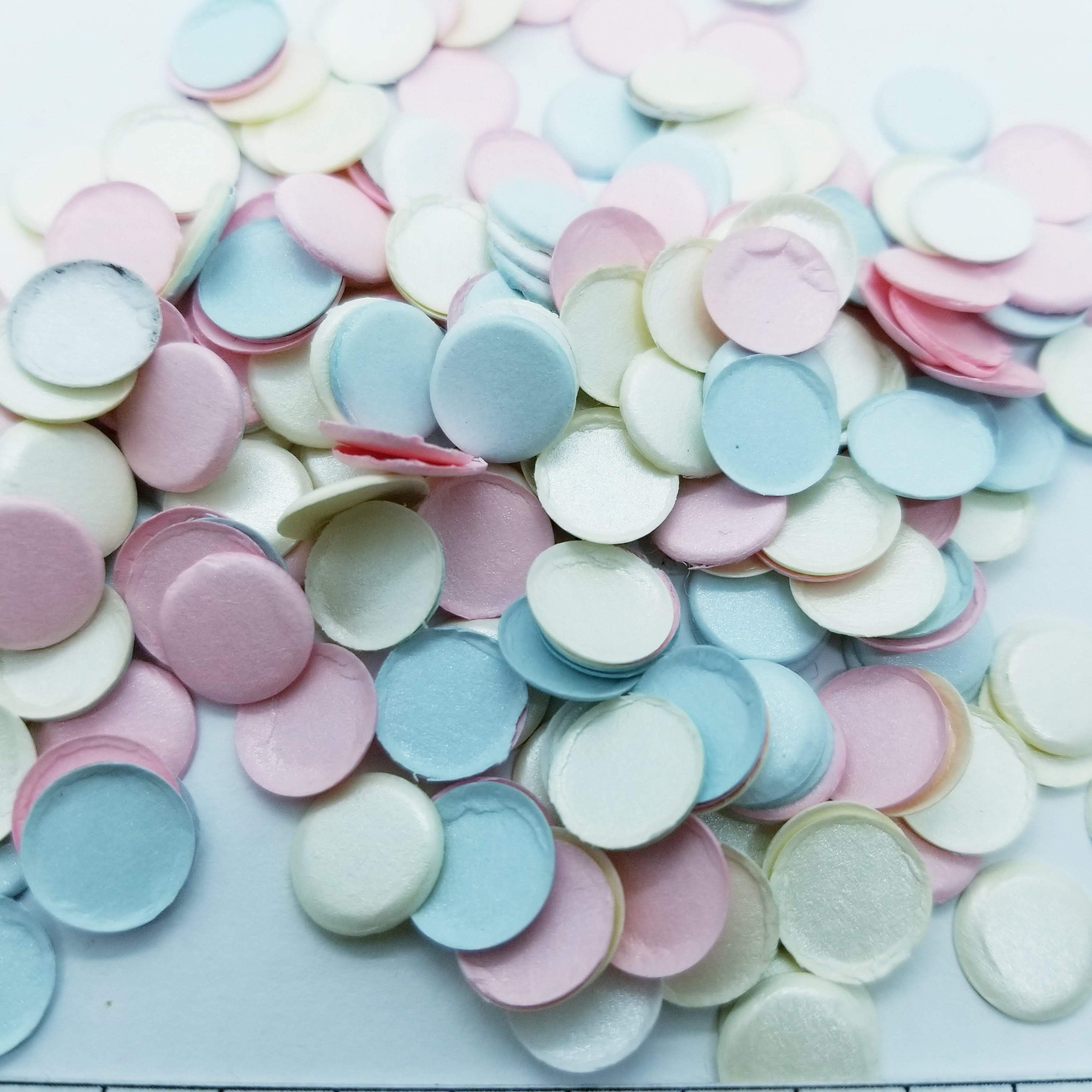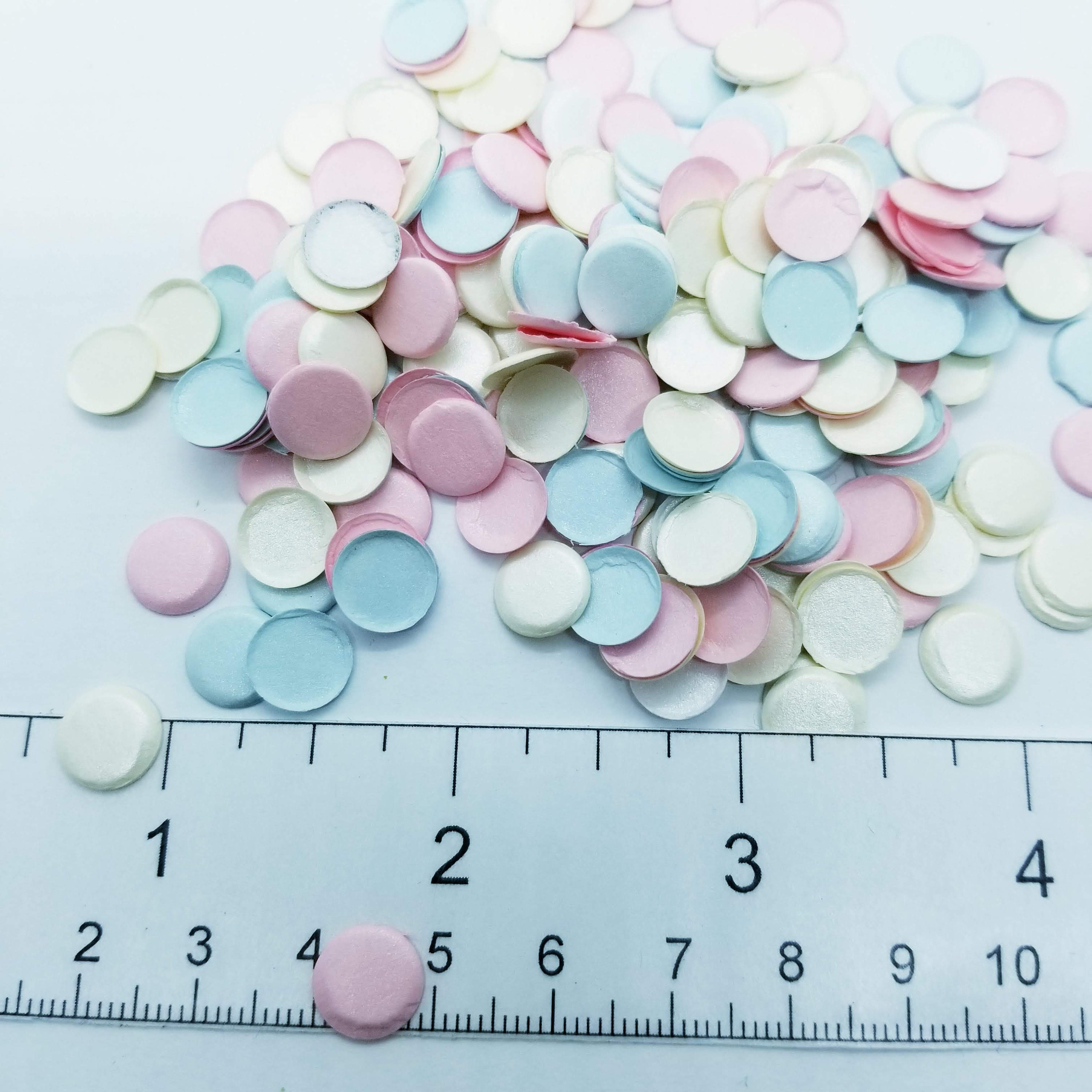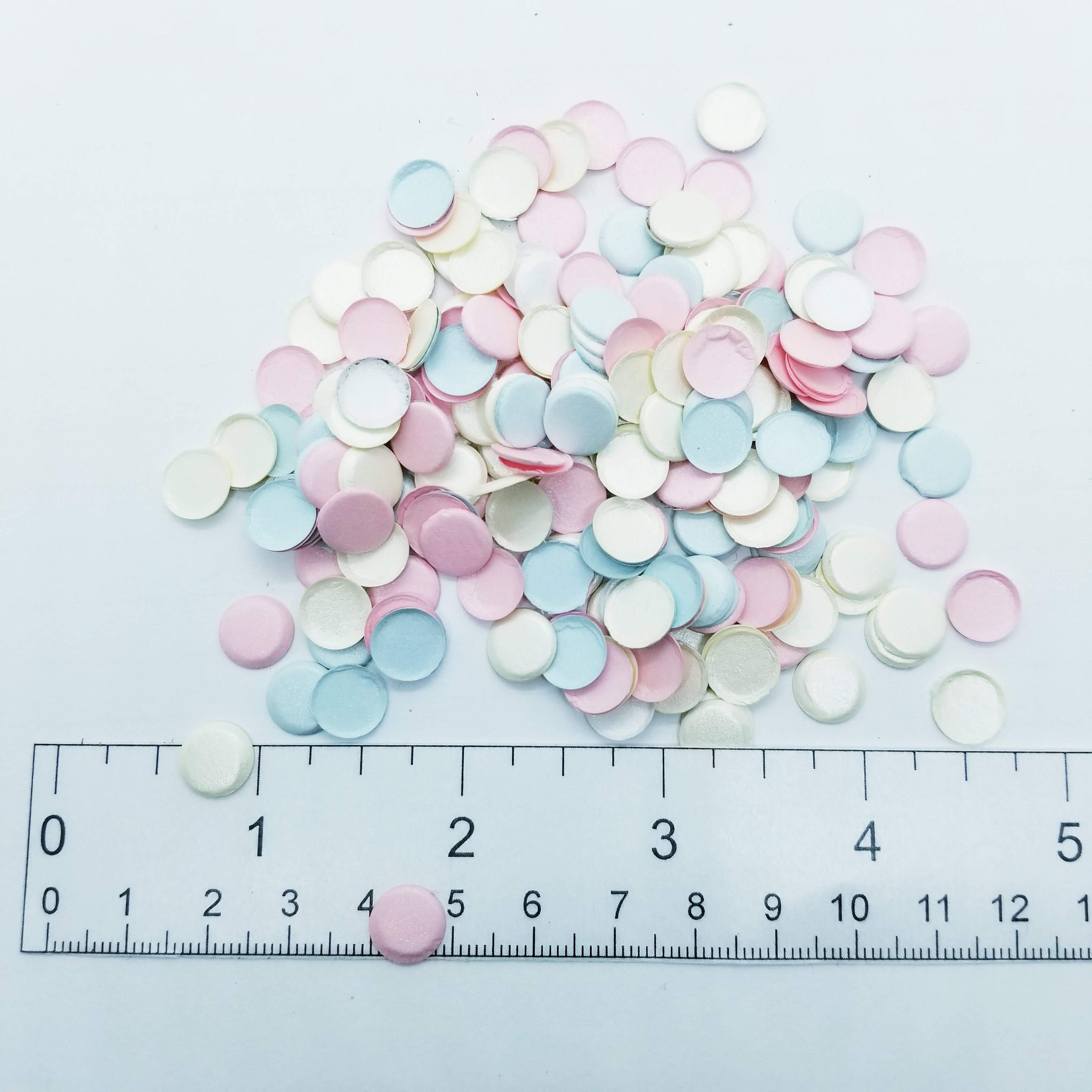 Pressed paper scrapbooking dots, embellishments for scrapbooks, collage and assemblages.