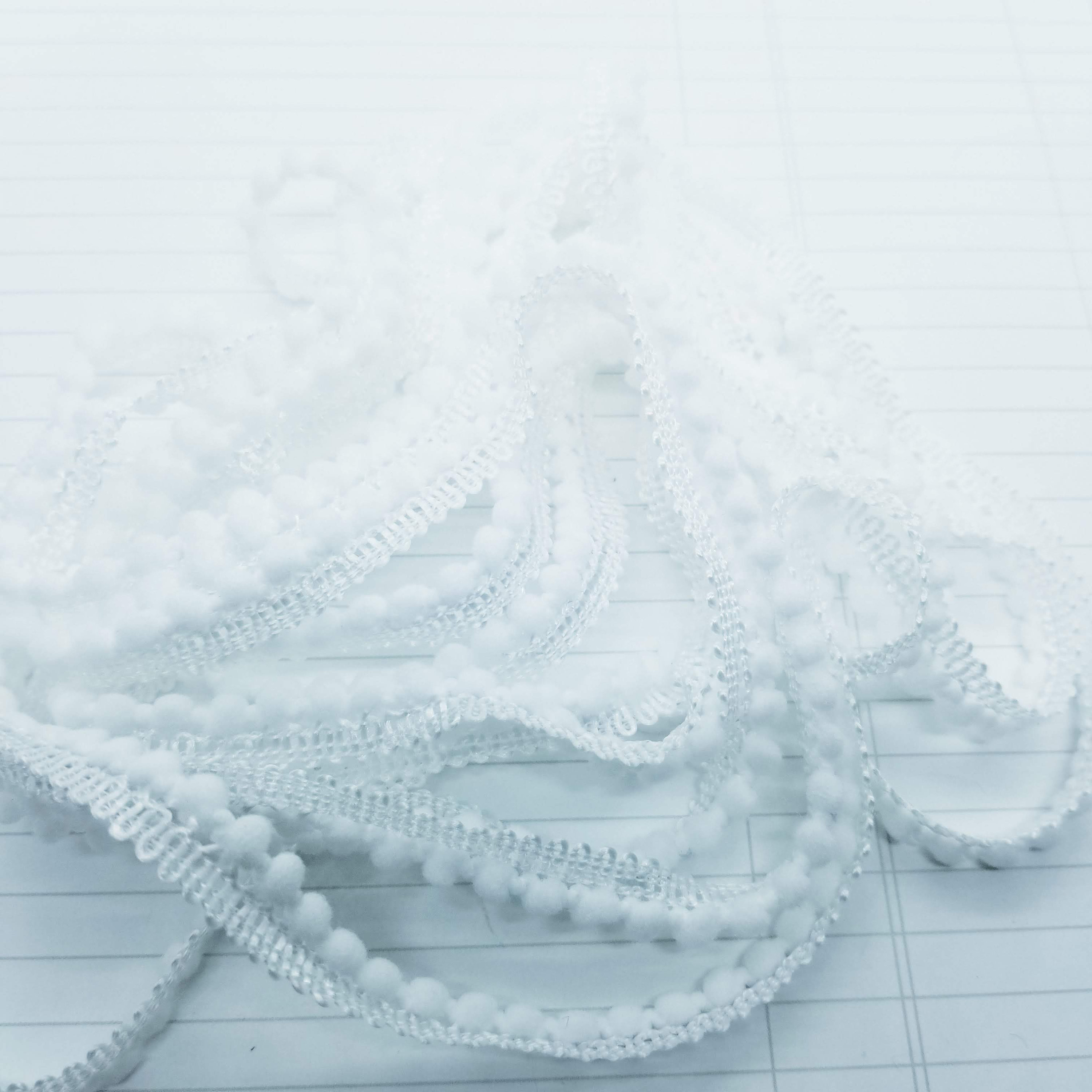 white polyester pom pom trim.