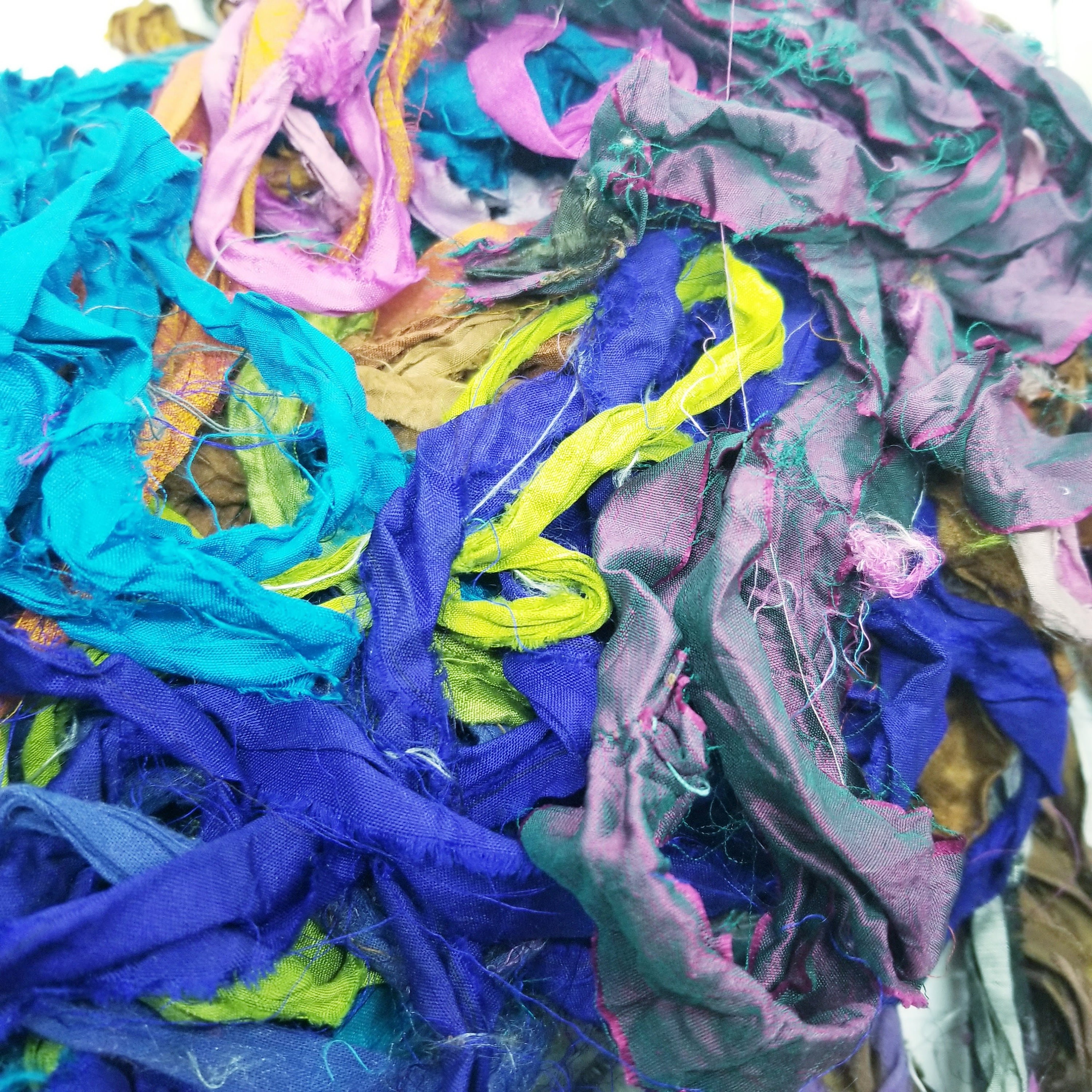 Crafted from luxurious silk sari waste (ends pieces from the fabric yardage not from used saris), our ribbons boast a delicate texture and vibrant hues that will elevate your projects to new heights.