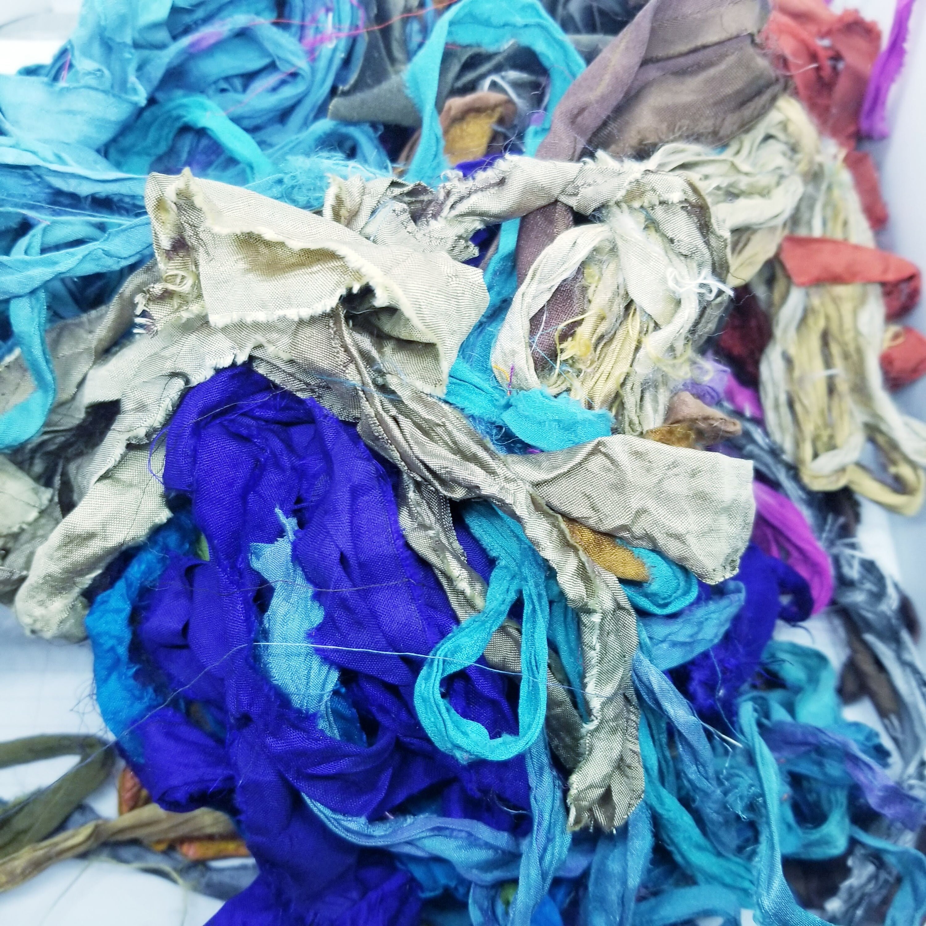 Whether you're embellishing a journal cover, weaving intricate patterns, or adding a whimsical touch to your altered art pieces, these torn silk ribbons are the perfect choice to let your creativity run wild as you mix and match colors and textures to achieve your desired look.