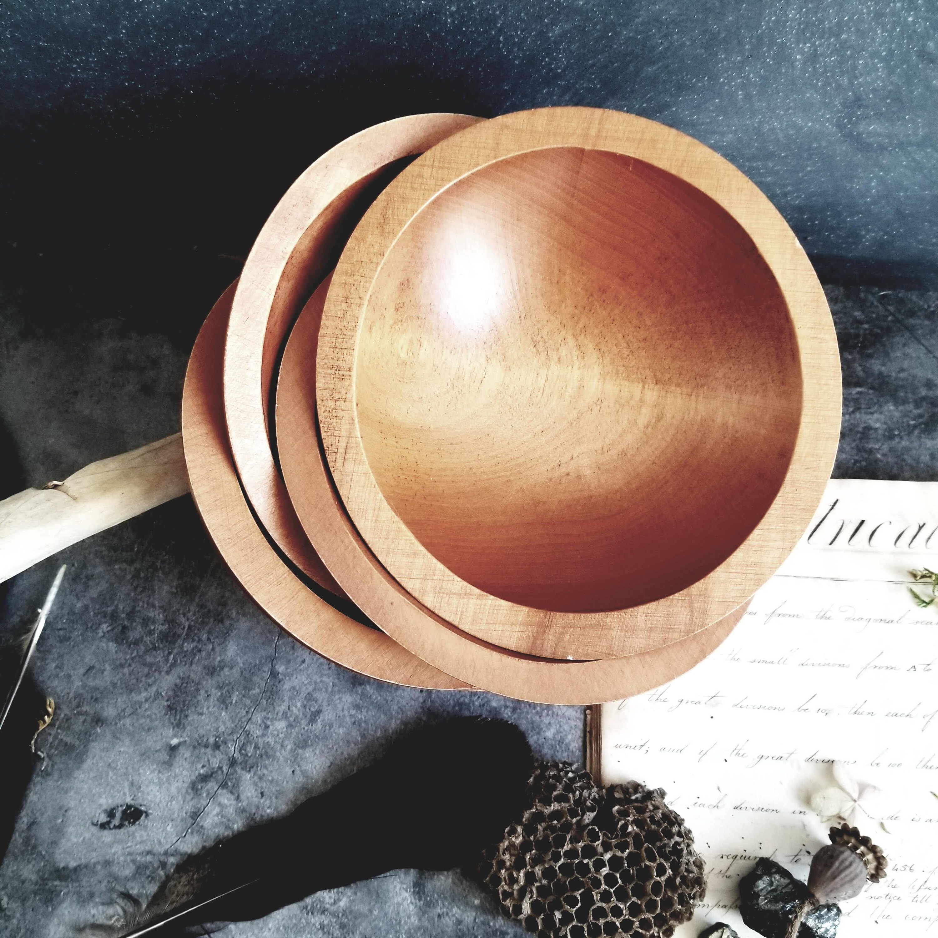 Lovely set of 5 small wooden bowls with a chunky rim.