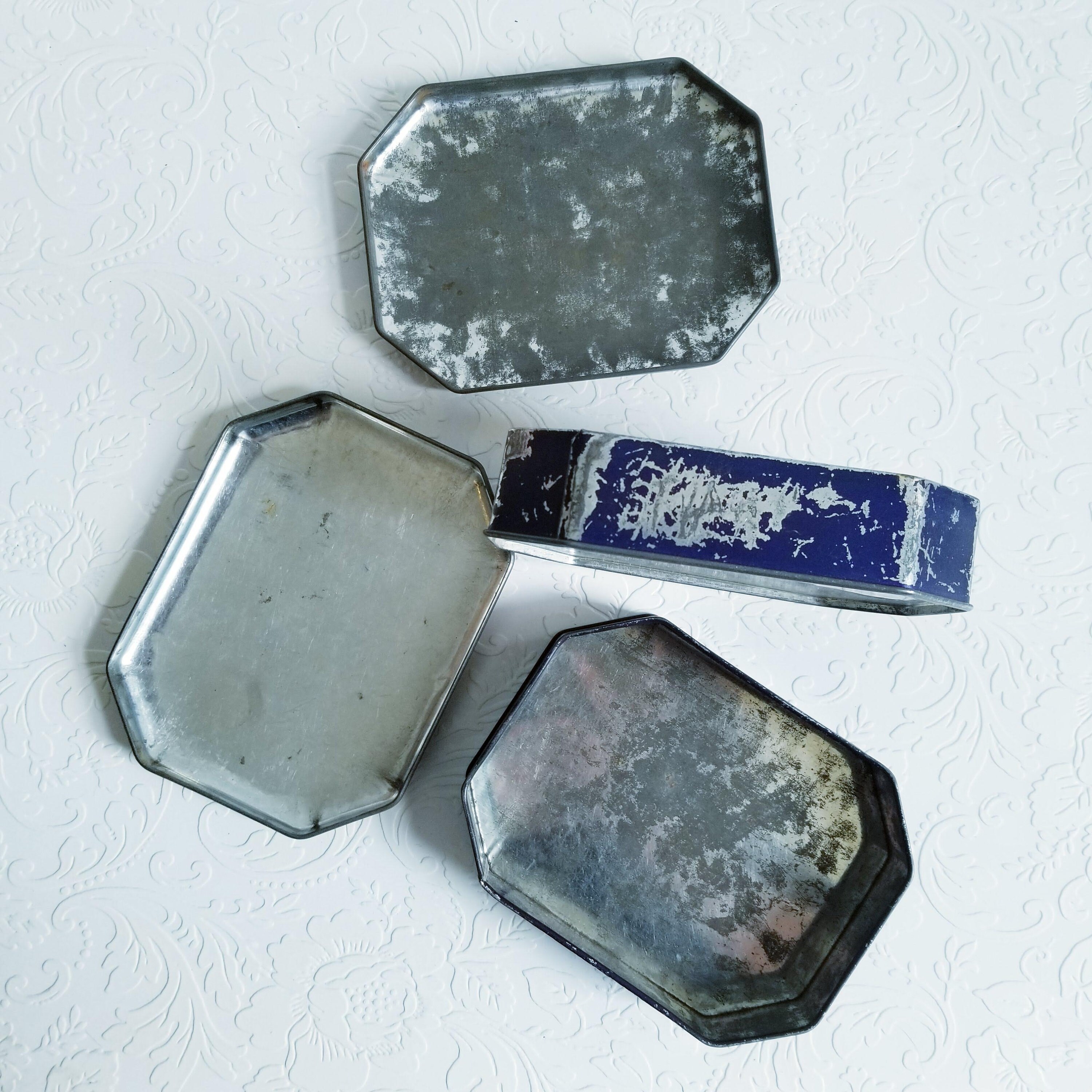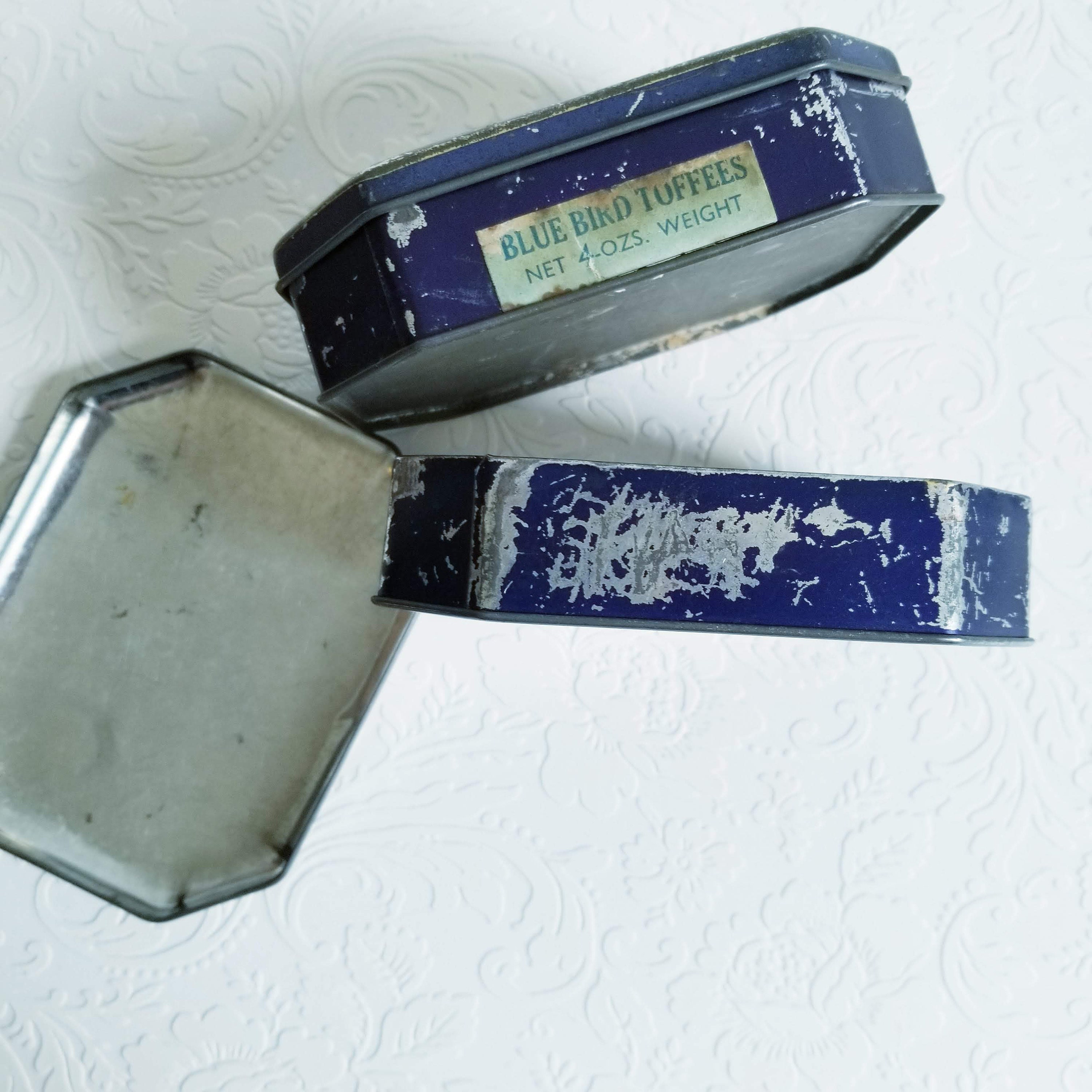 2 vintage 1930s tins feature King George VI, Queen Elizabeth, the Queen Mom and the two princesses, Elizabeth and Margaret.