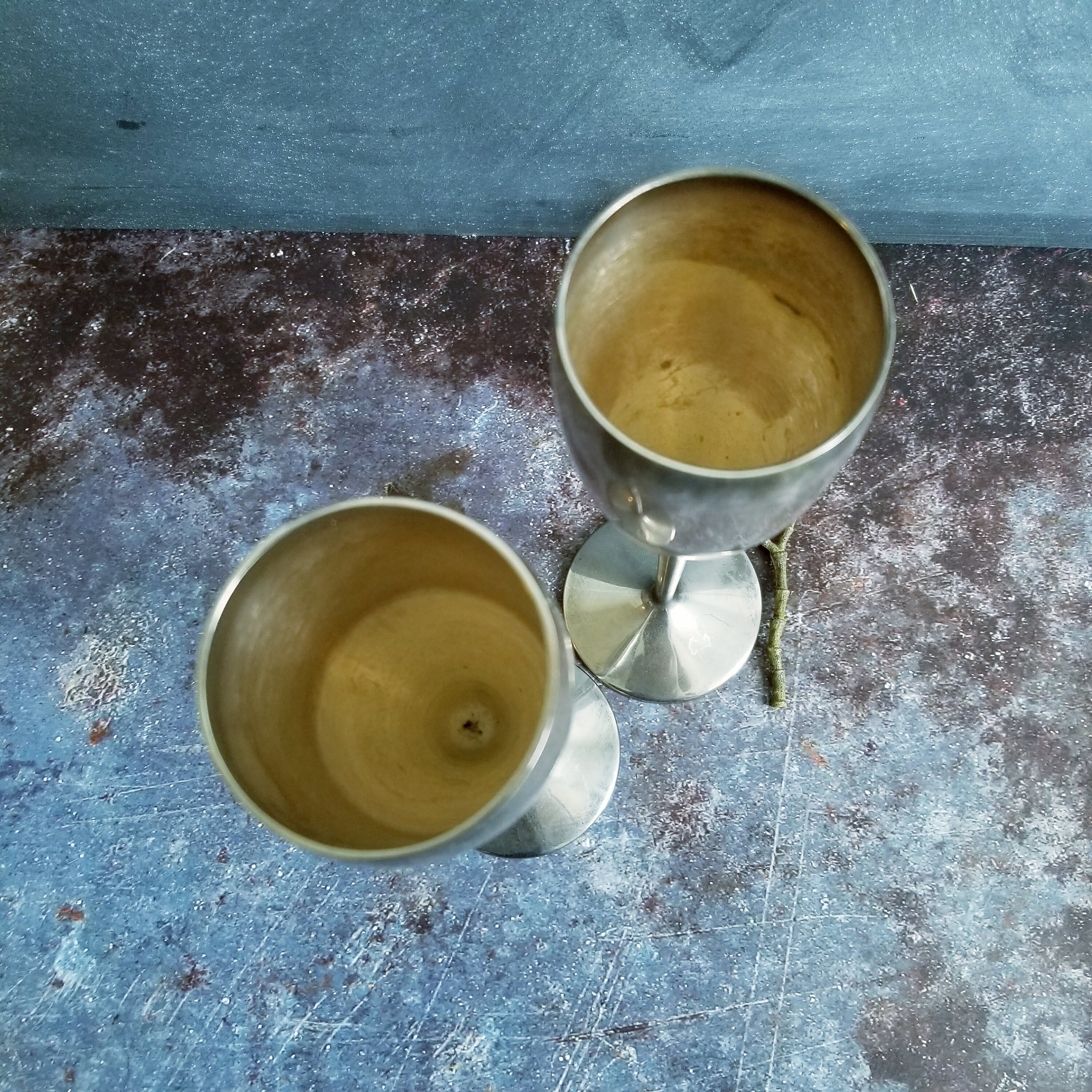 Two Tall silverplate metal goblets 9 inches x 2 inches.