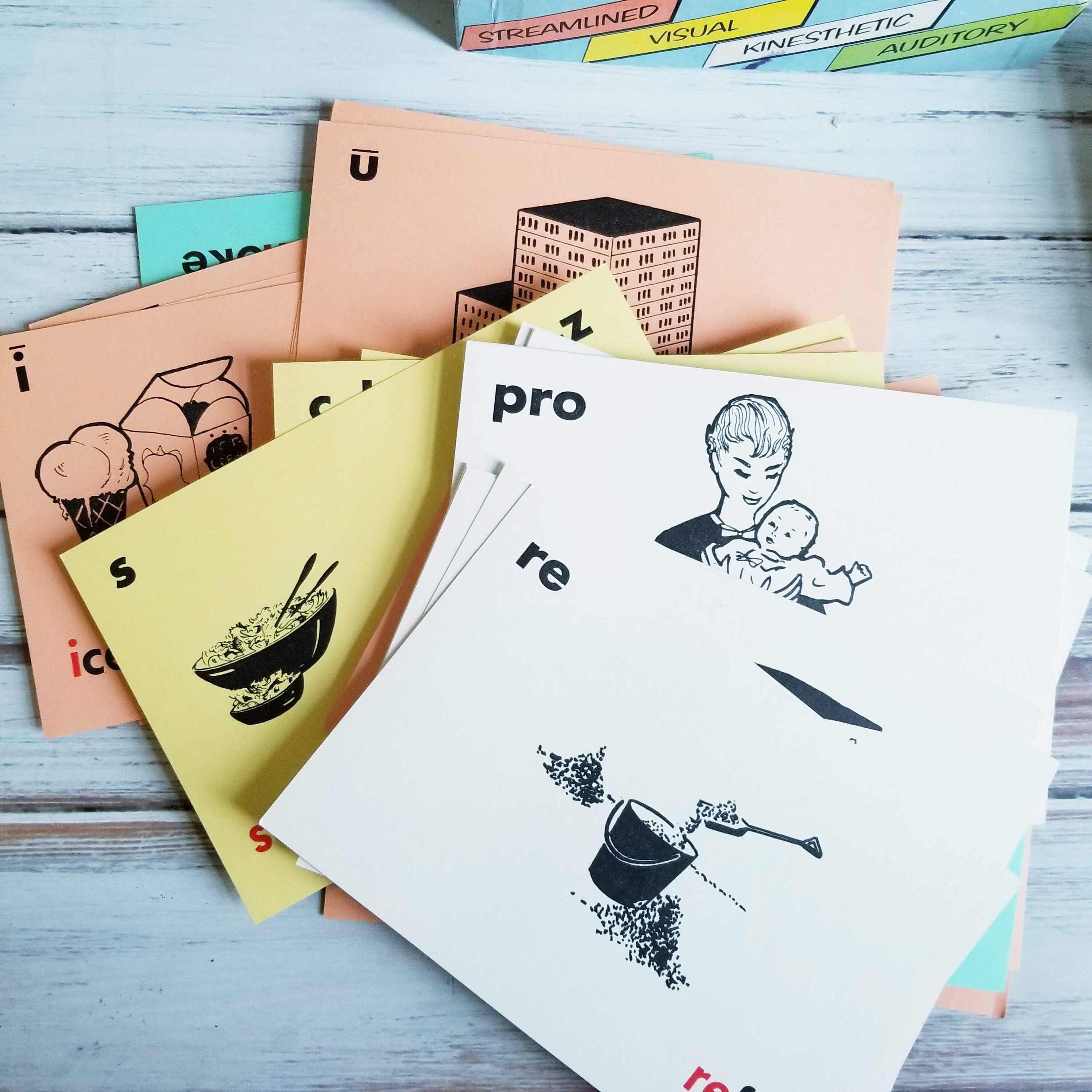 Vintage UNO Game for teaching phonics in school, 1950s teaching flash cards.