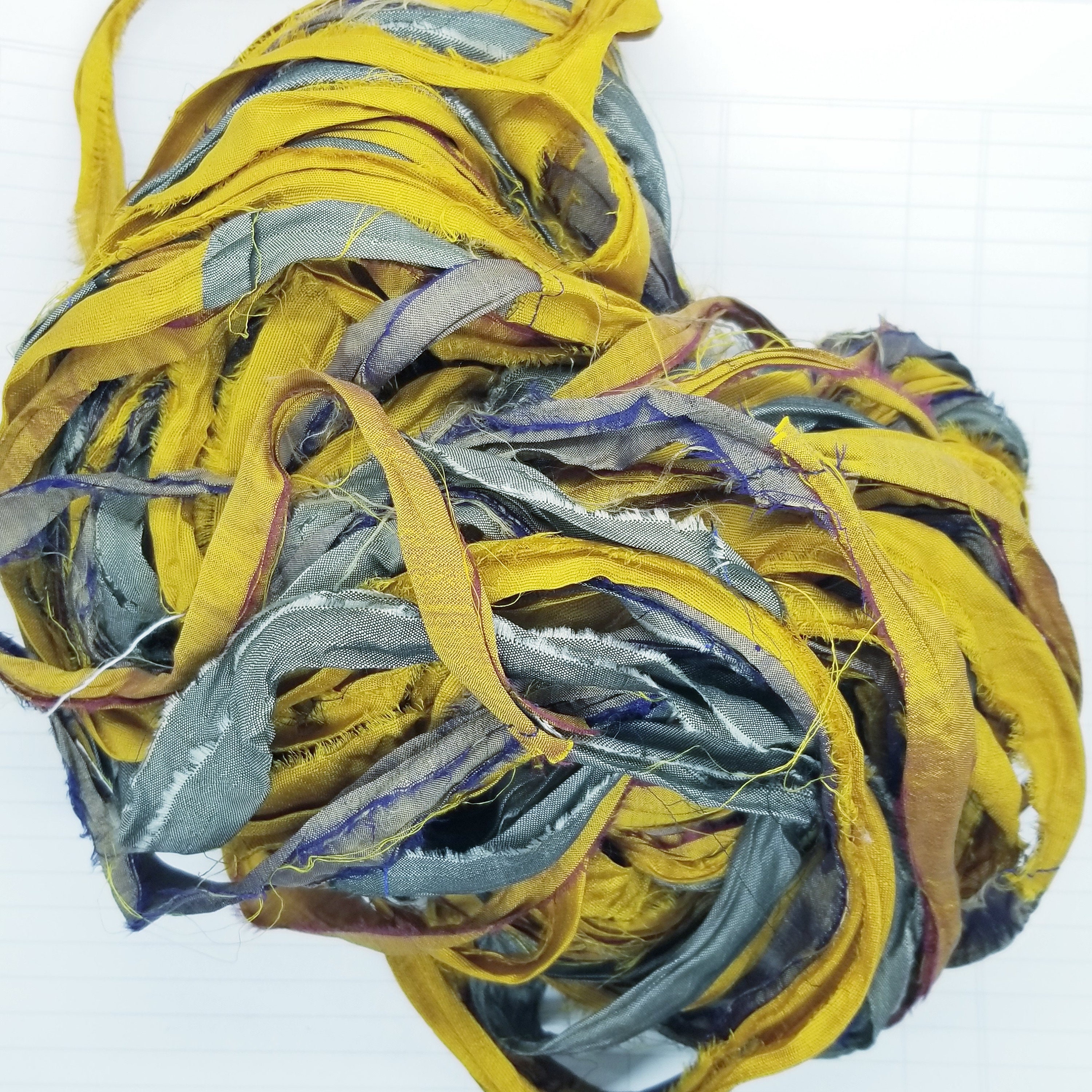 Crafted from luxurious silk sari waste (ends pieces from the fabric yardage not from used saris), our ribbons boast a delicate texture and vibrant hues that will elevate your projects to new heights.