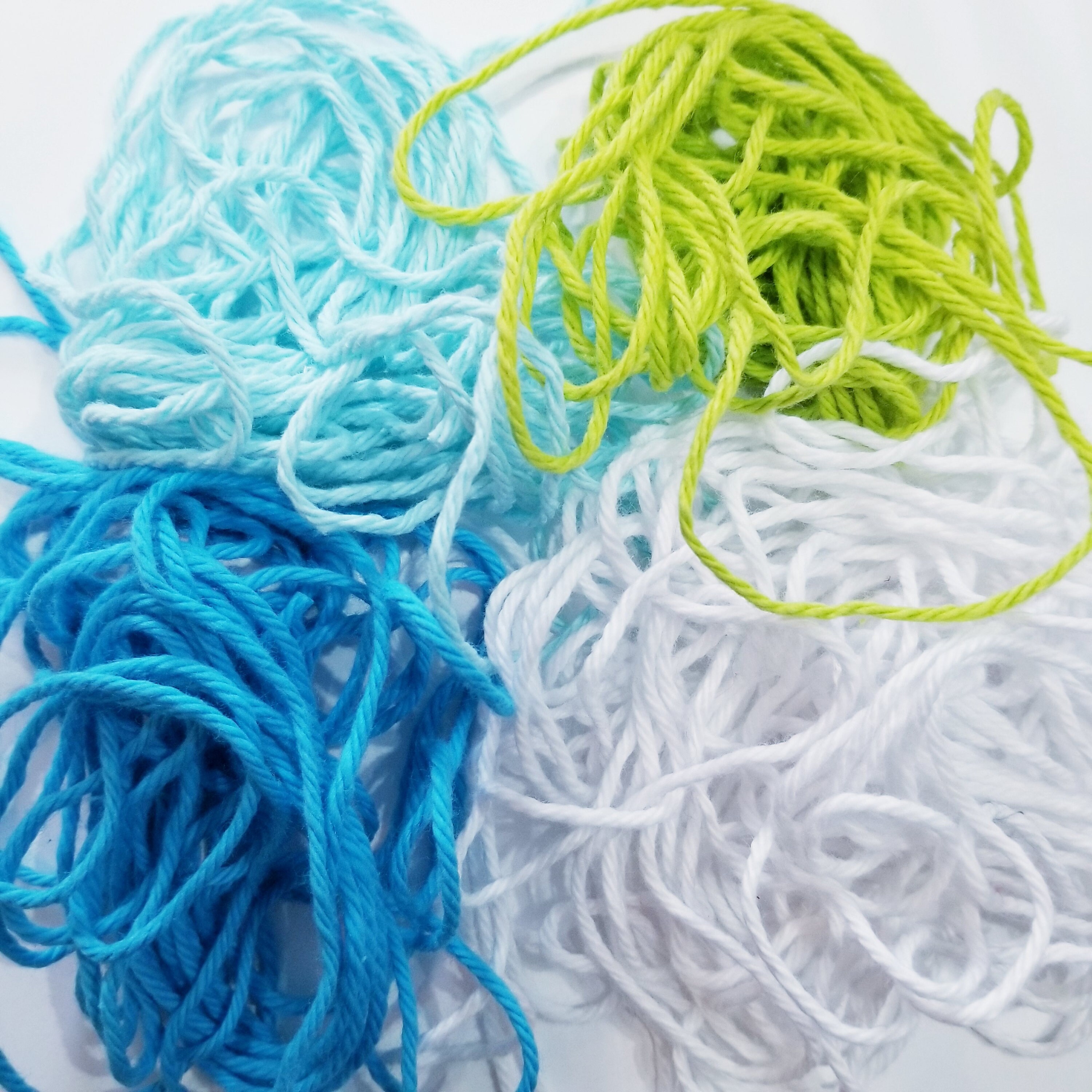 5 feet of each of 4 - white, light blue, bright blue and a lime green