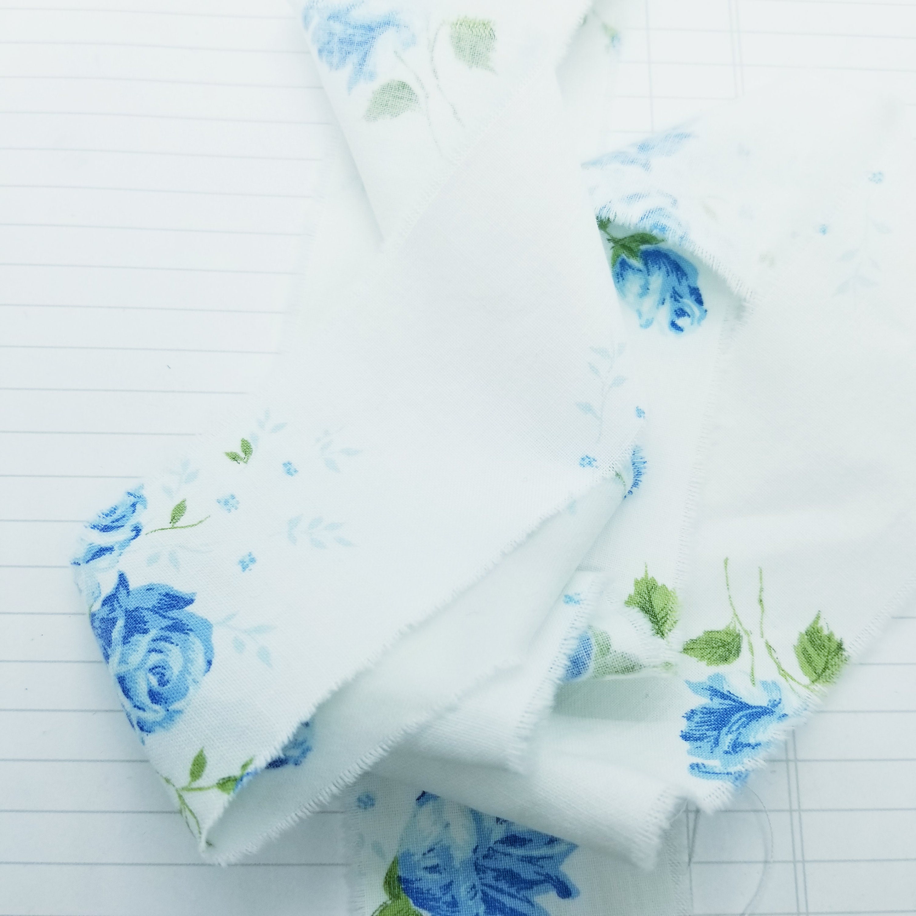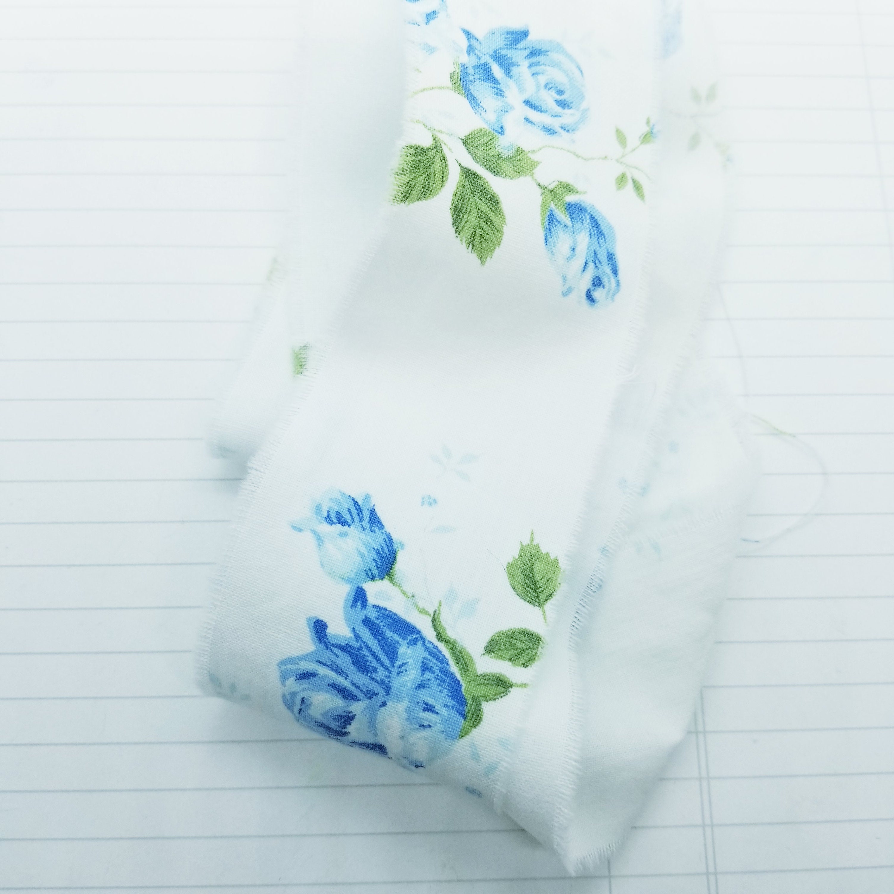Blue Roses Wide Torn Cotton Polyester Ribbon- Recycled Vintage Fabric- 4 yards