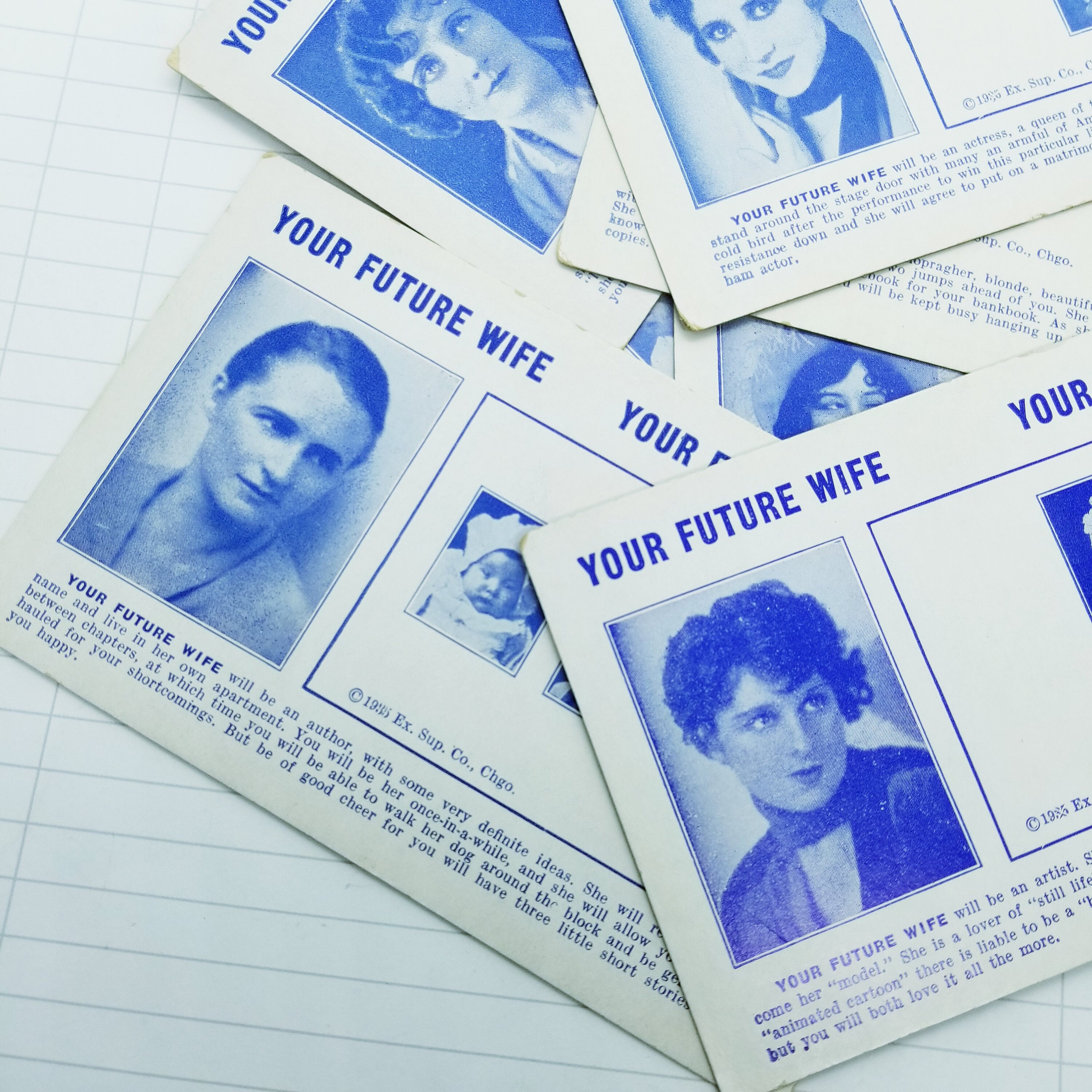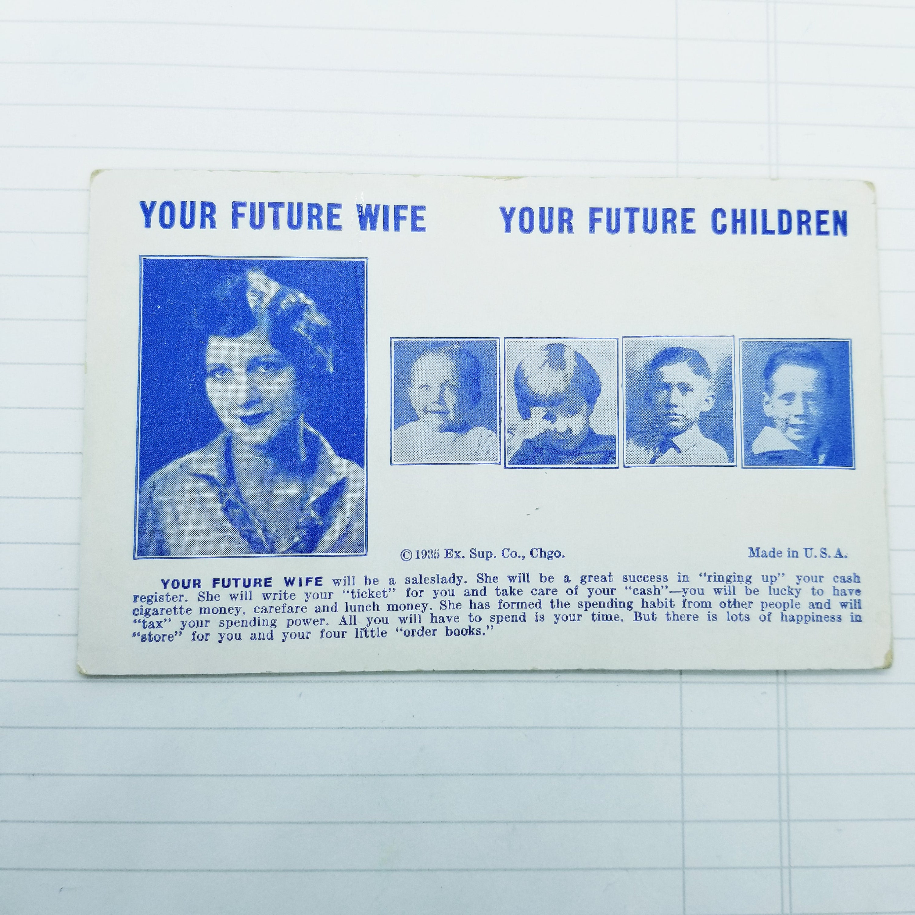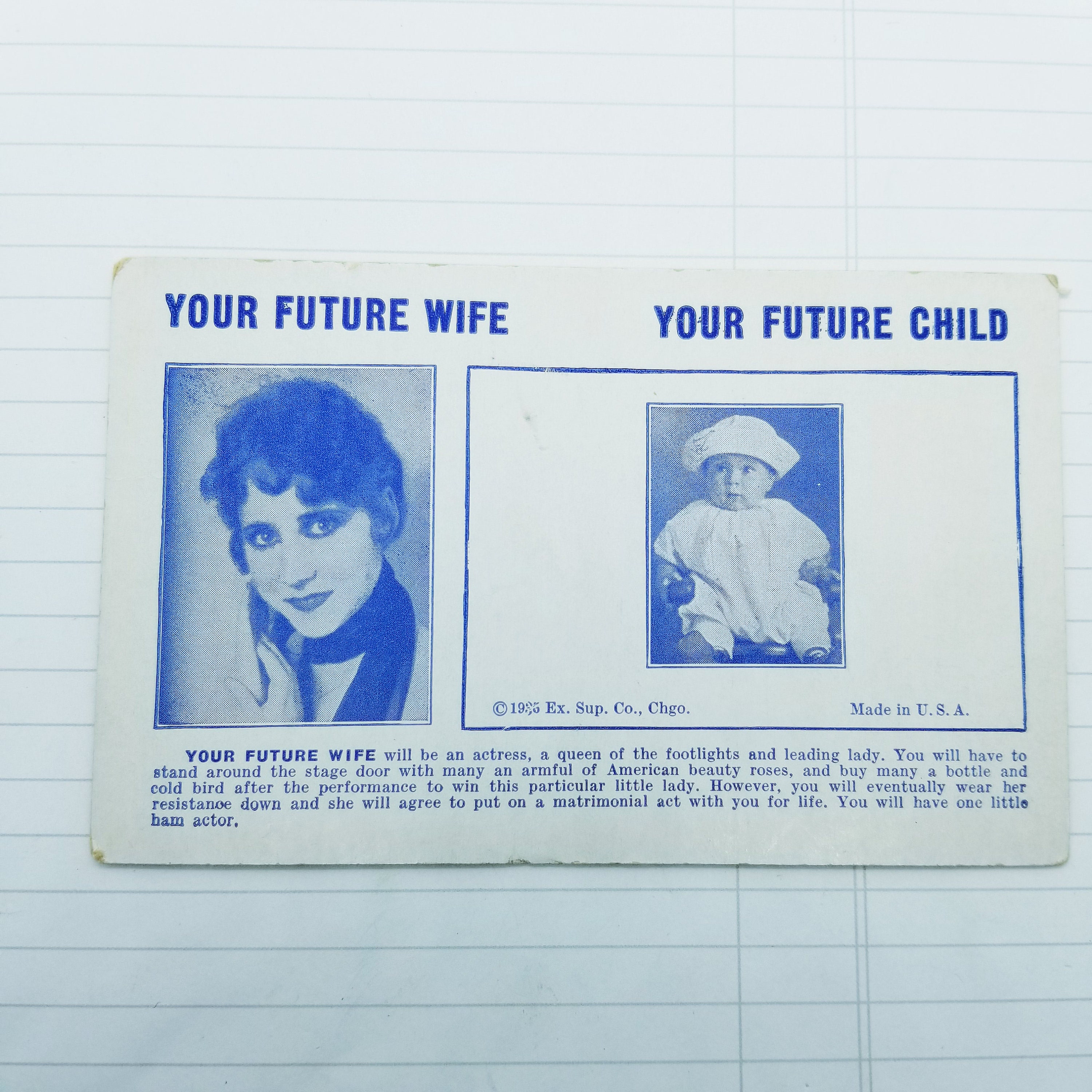 Nifty little postcards from a fair or arcade fortune telling machine. In good condition with slight wear and in vintage condition, 1930s.