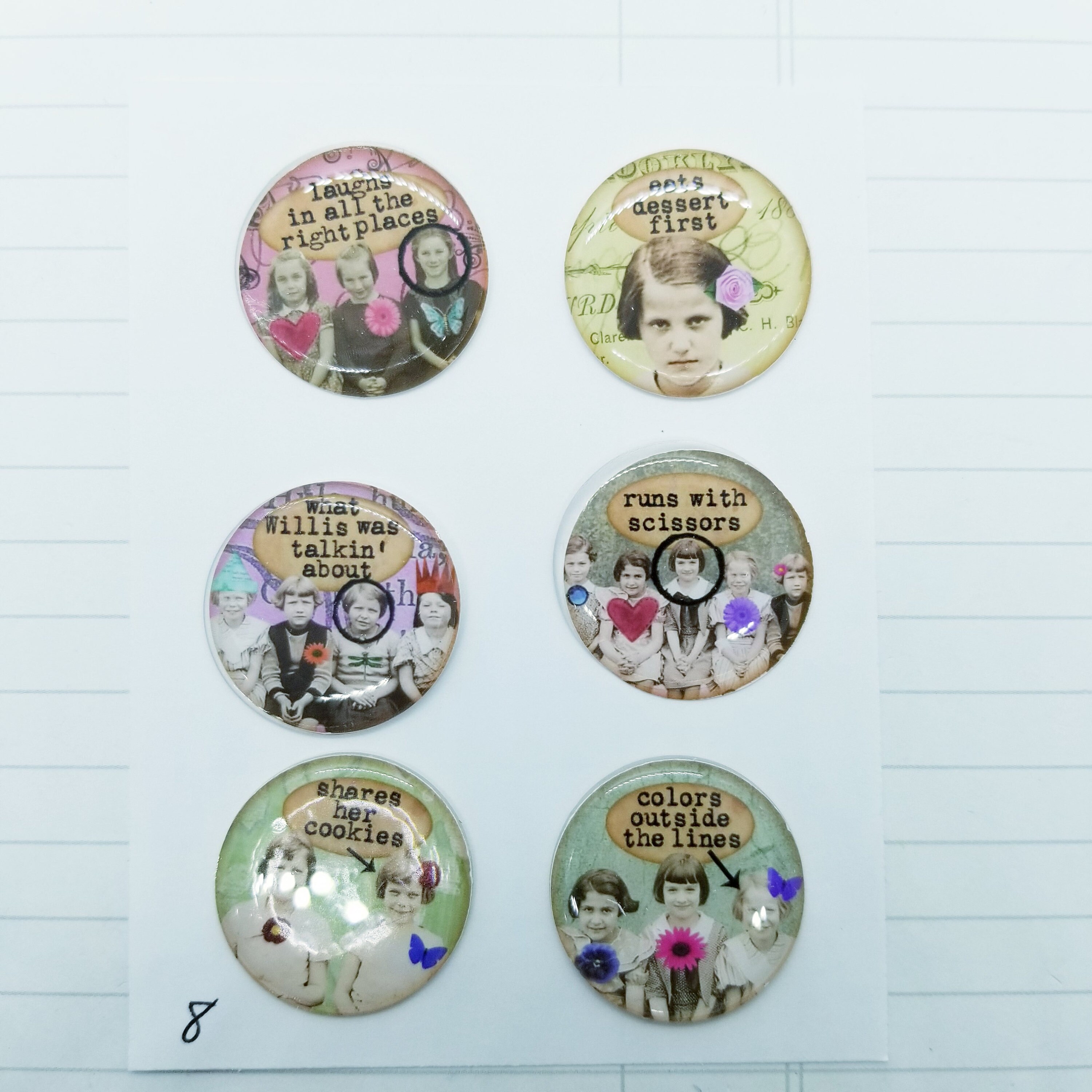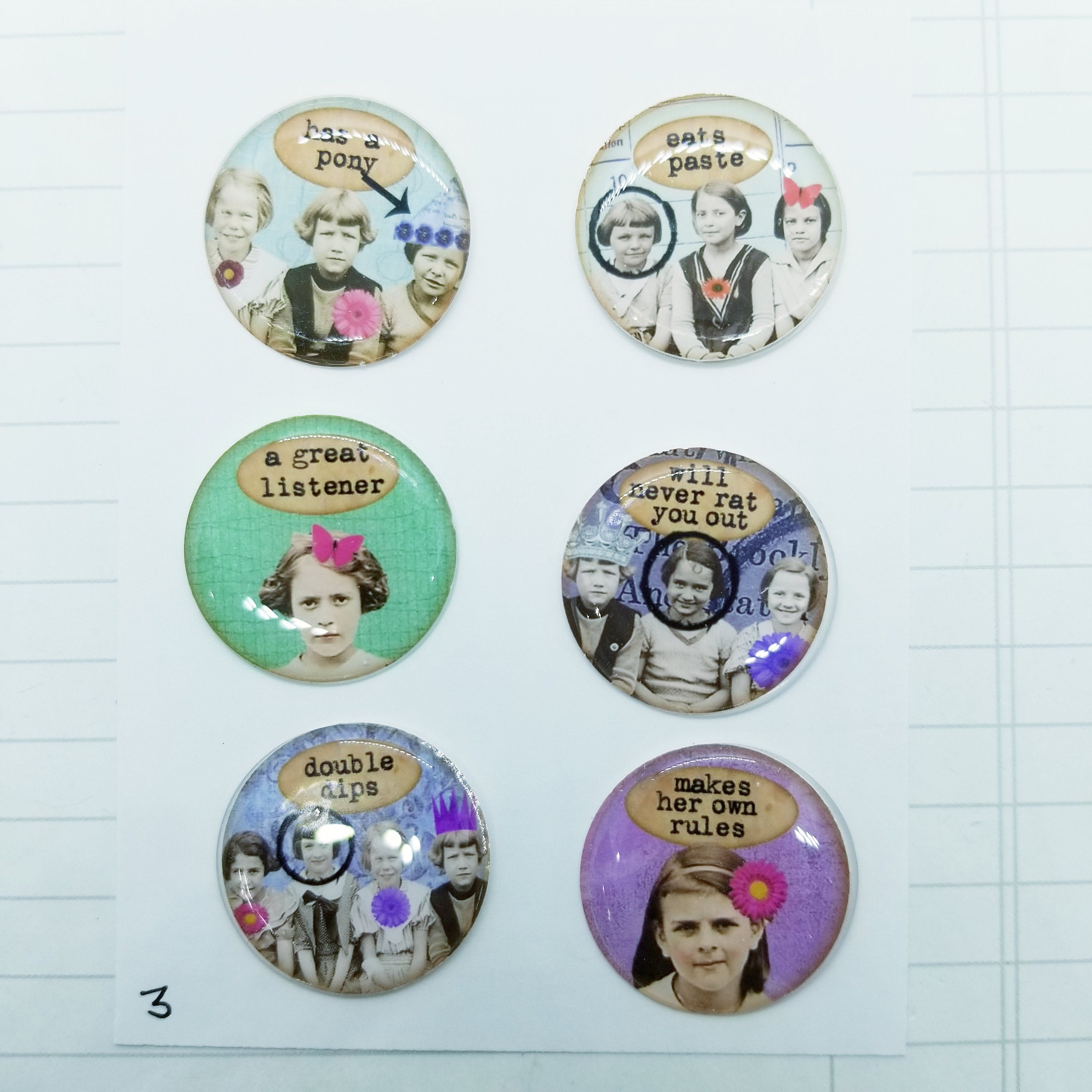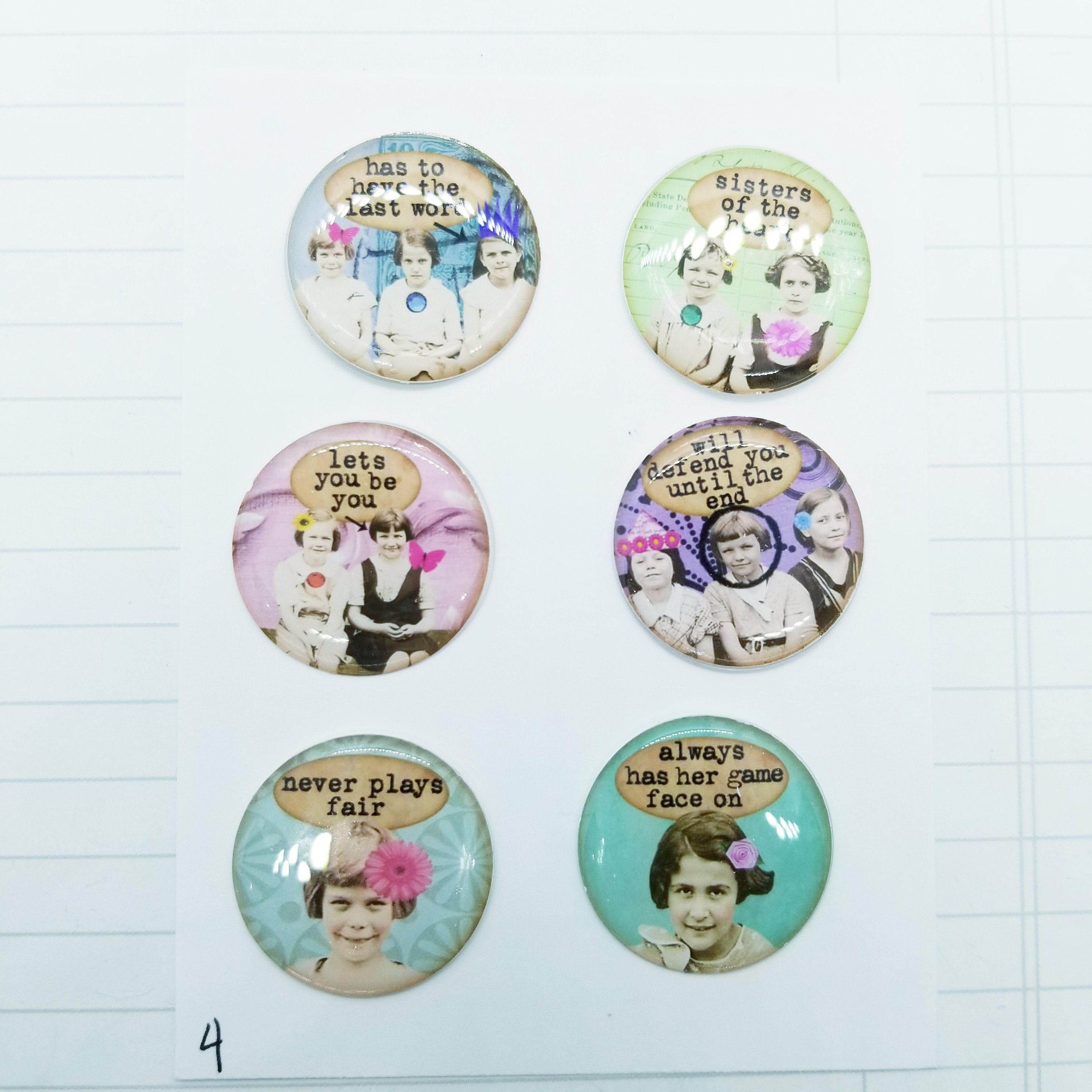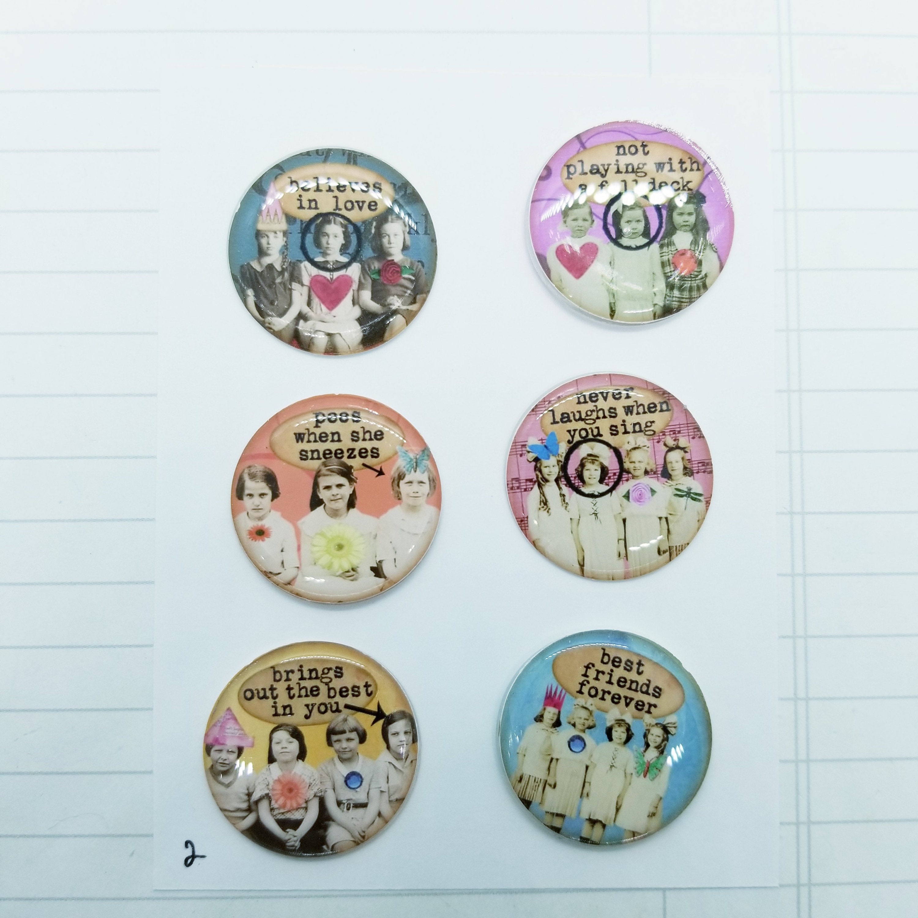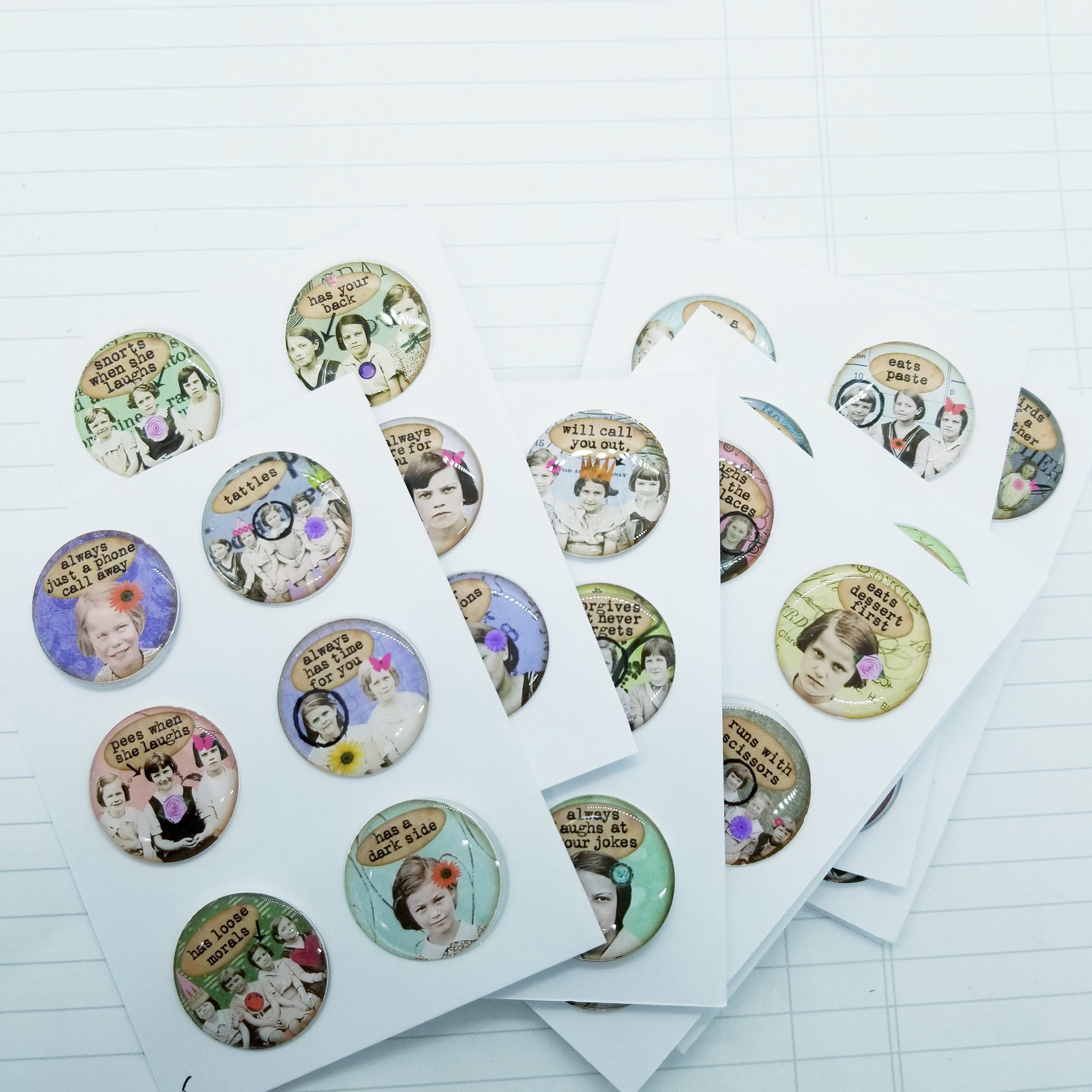 Printed on glossy photo paper for long lasting vibrant color, layered under a 1 inch epoxy sticker. Thickness is approximately 2 mm.