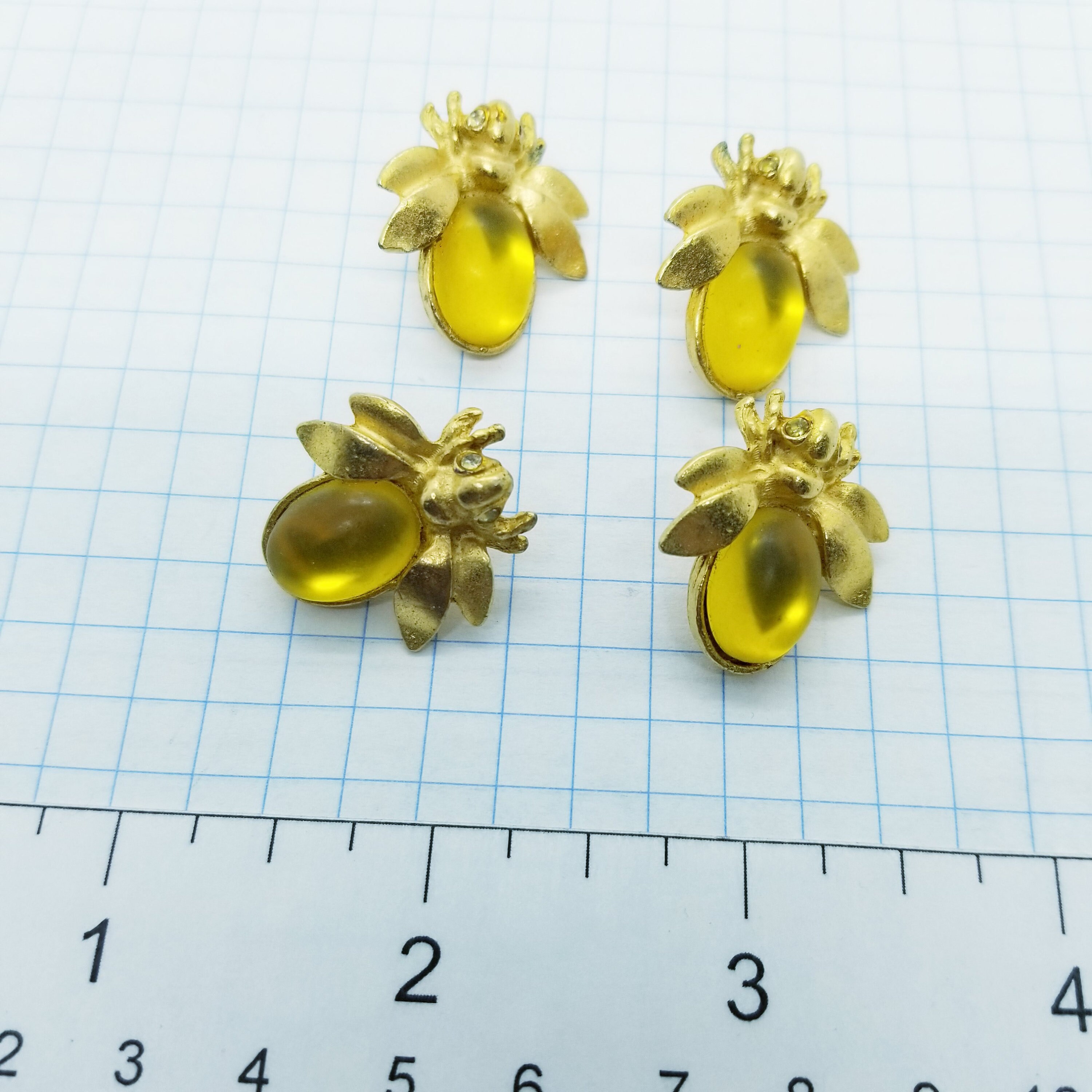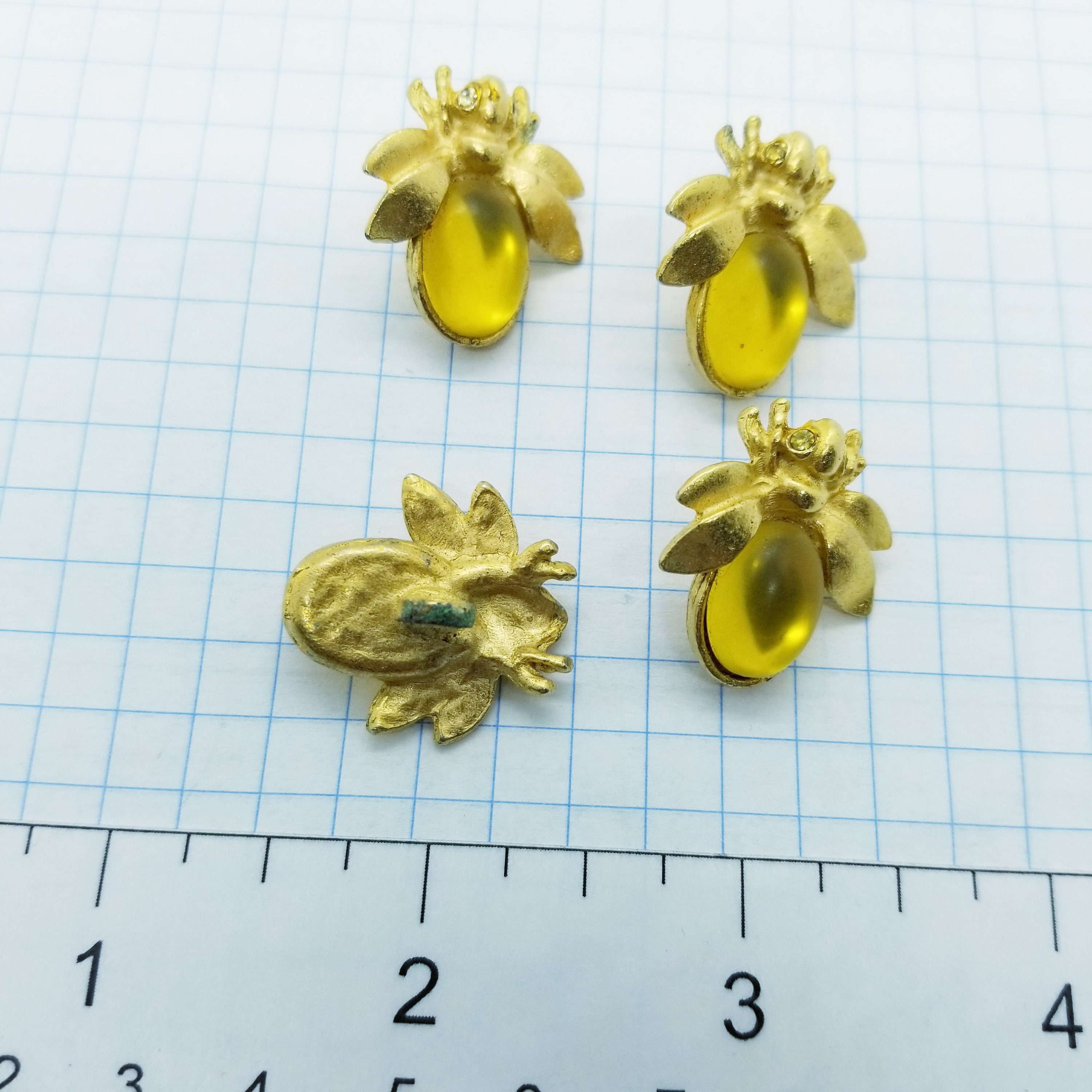 4 vintage goldtone button bees, choose from golden yellow cabochon or brown cabochon.
