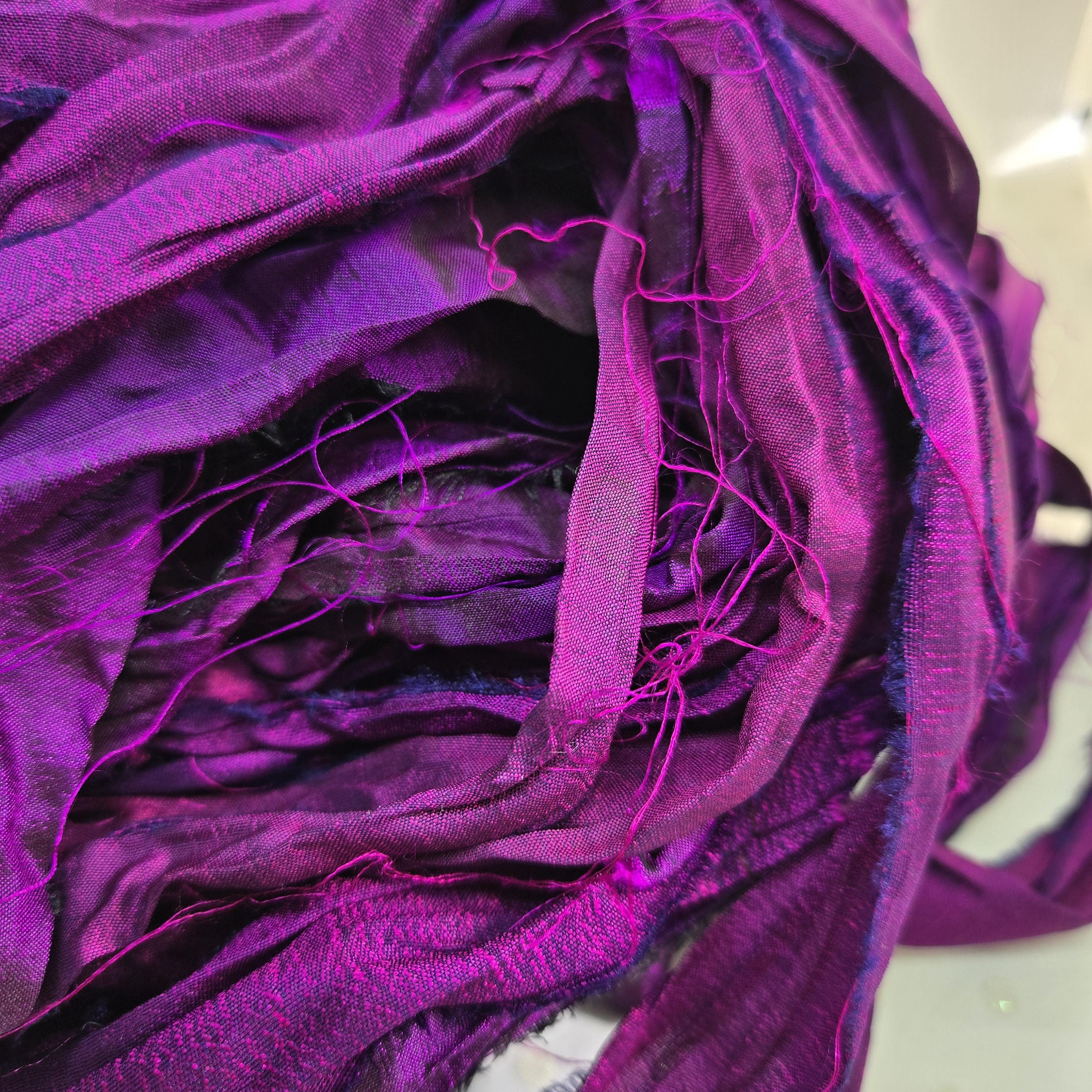 Crafted from luxurious silk sari waste (ends pieces from the fabric yardage not from used saris), our ribbons boast a delicate texture and vibrant hues that will elevate your projects to new heights.