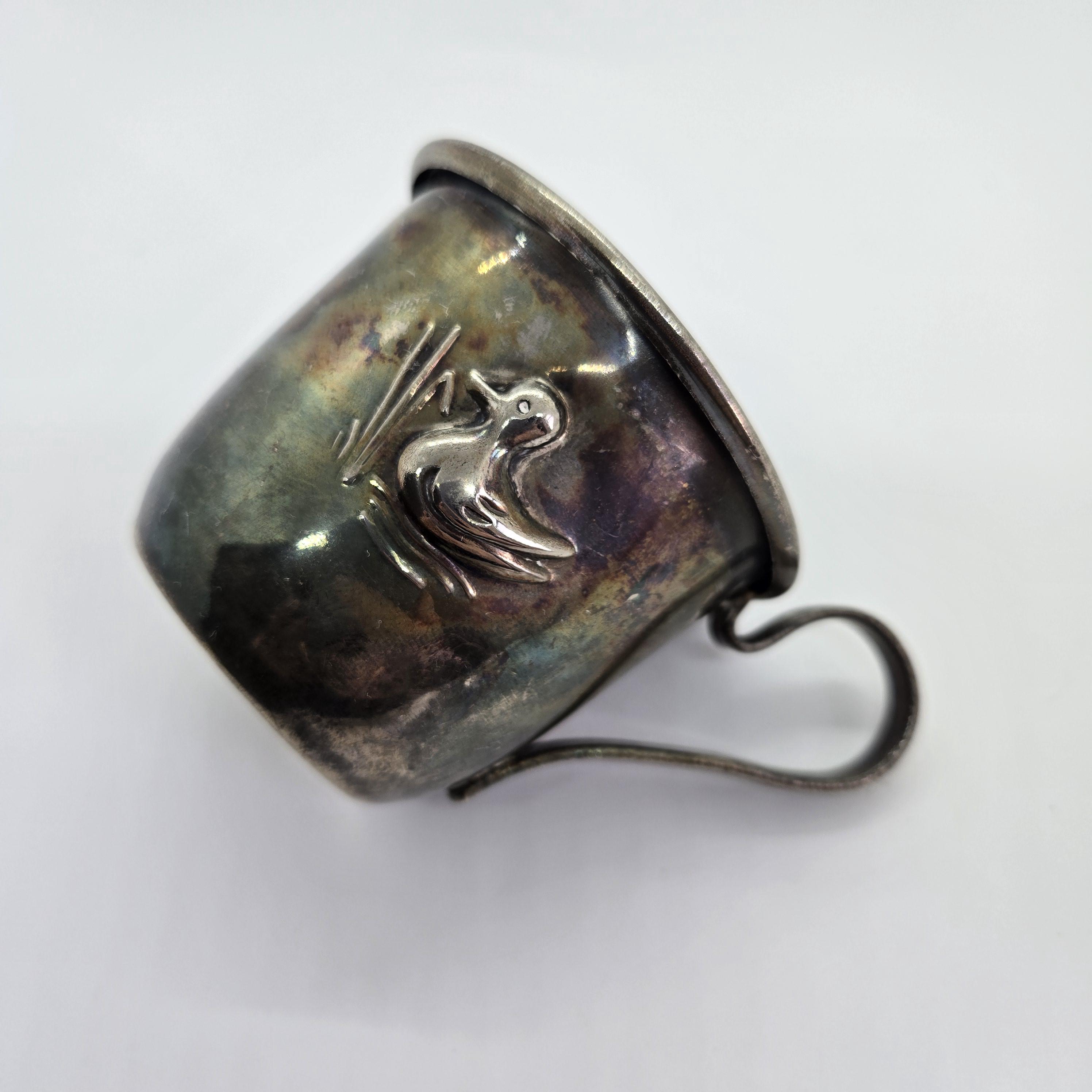 Lovely little metal baby cup embossed with a cute little duck.