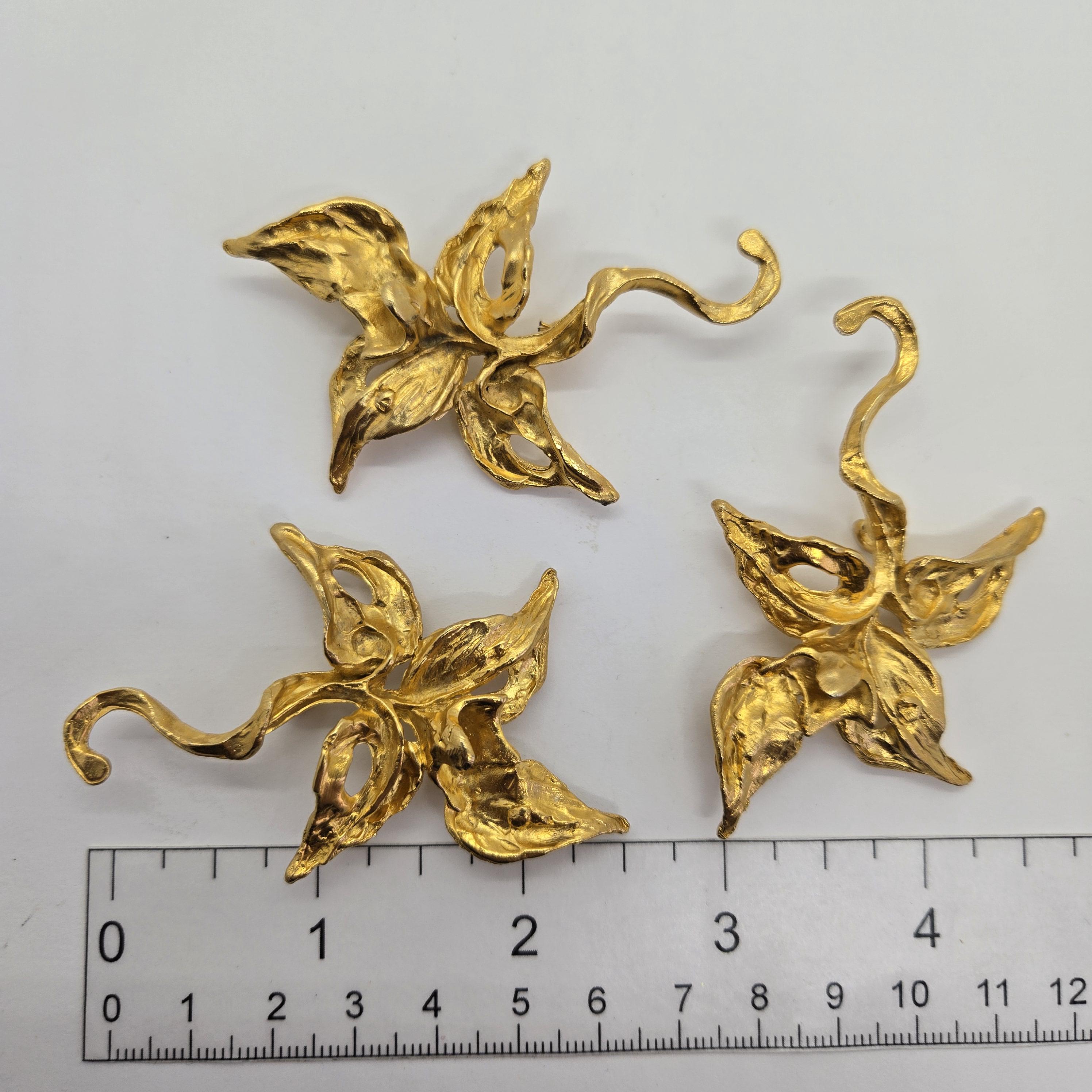 To be honest, I'm not sure if these are some sort of clothing decoration or a jewelry finding. The leafy pieces have 3 closed rings on the back.