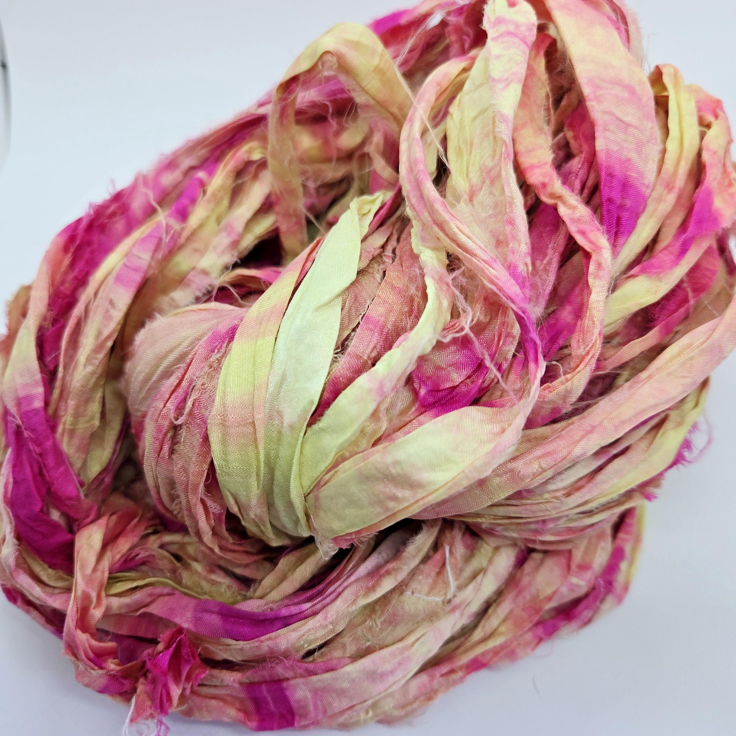 Crafted from luxurious silk sari waste (ends pieces from the fabric yardage not from used saris), our ribbons boast a delicate texture and vibrant hues that will elevate your projects to new heights.