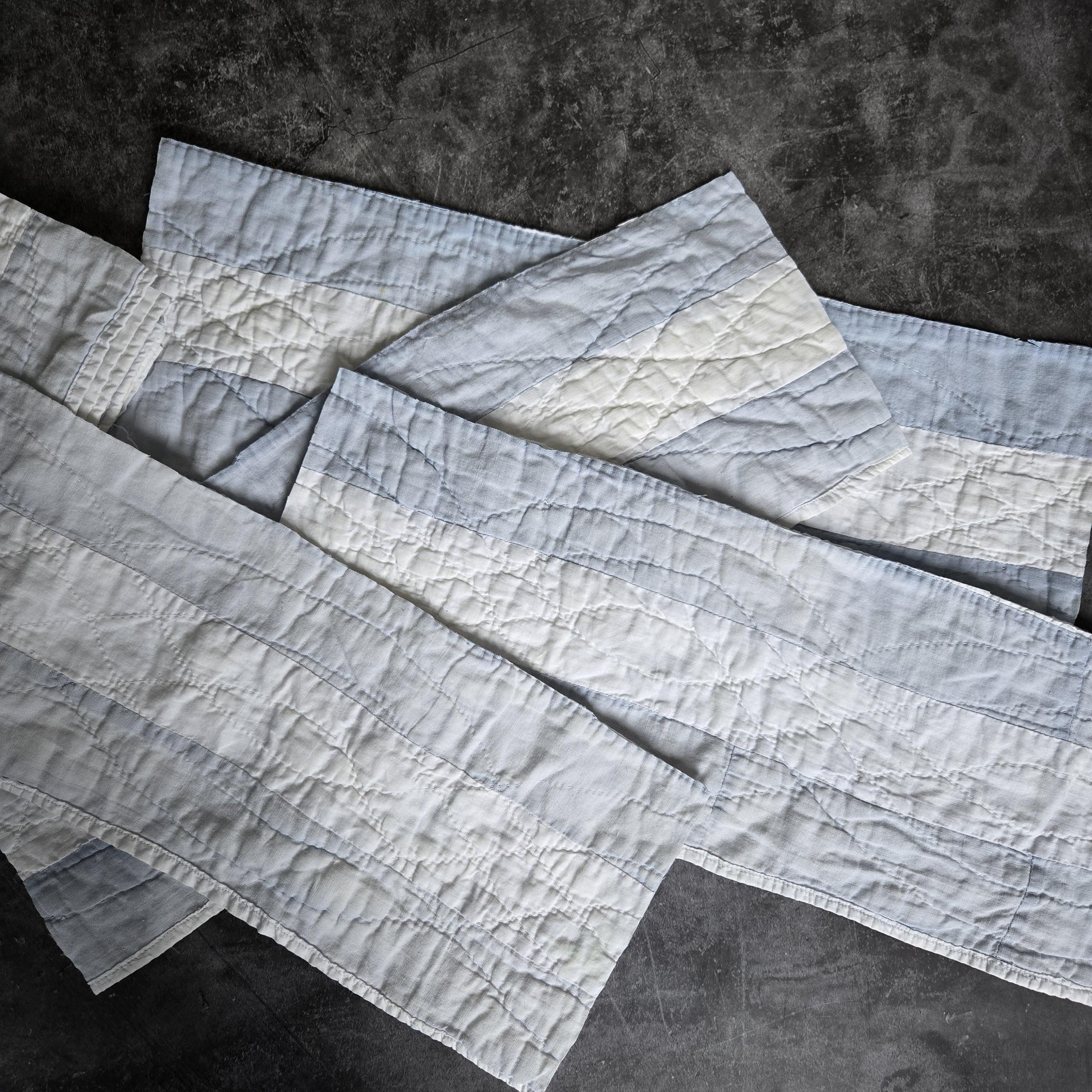 Blue and White Strip from a well loved and worn quilt, 18 inches long, approximately 6-7 inches wide, easily cut down for small trims and decorations in your junk journal or to add to your slow stitch project.