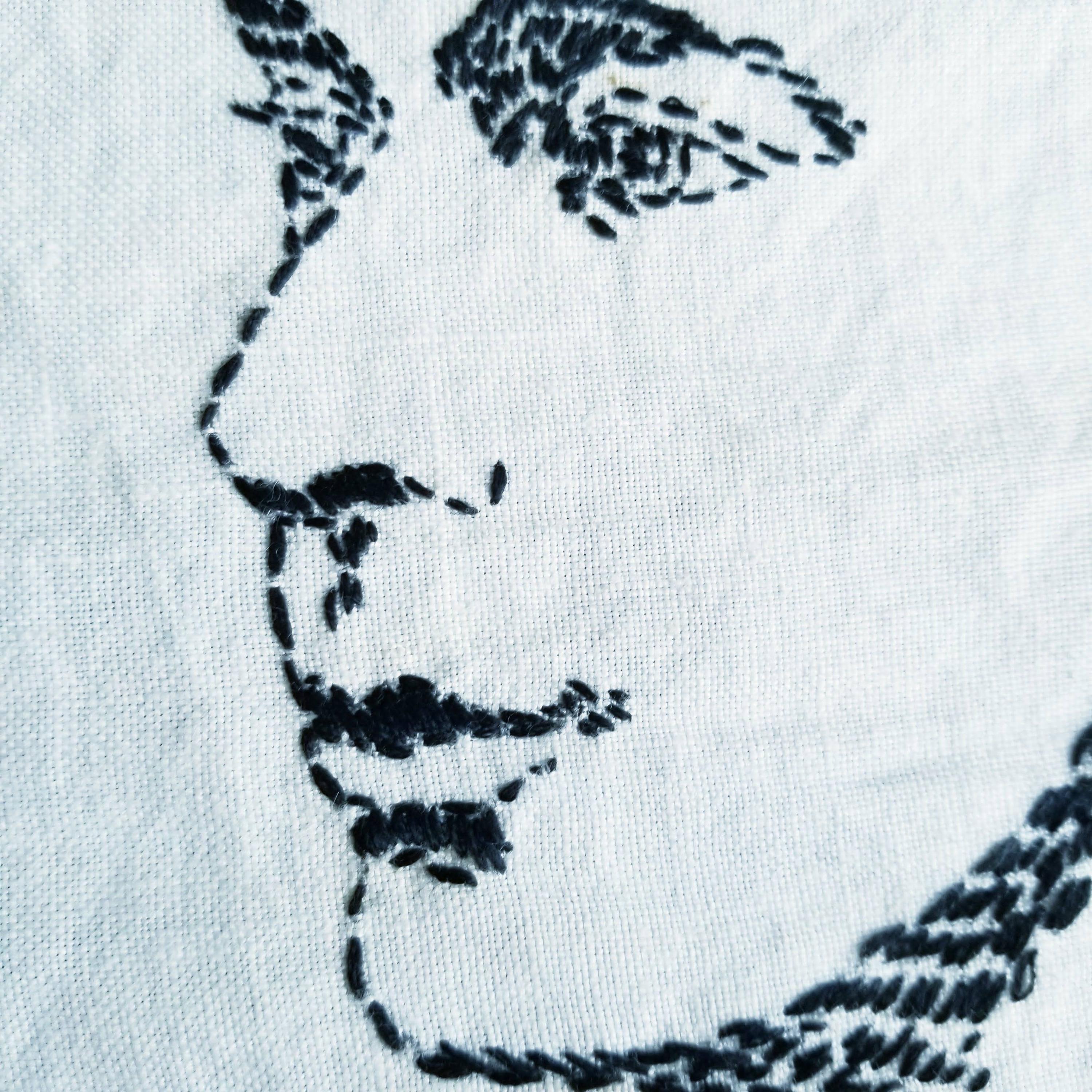 black stitching on linen.