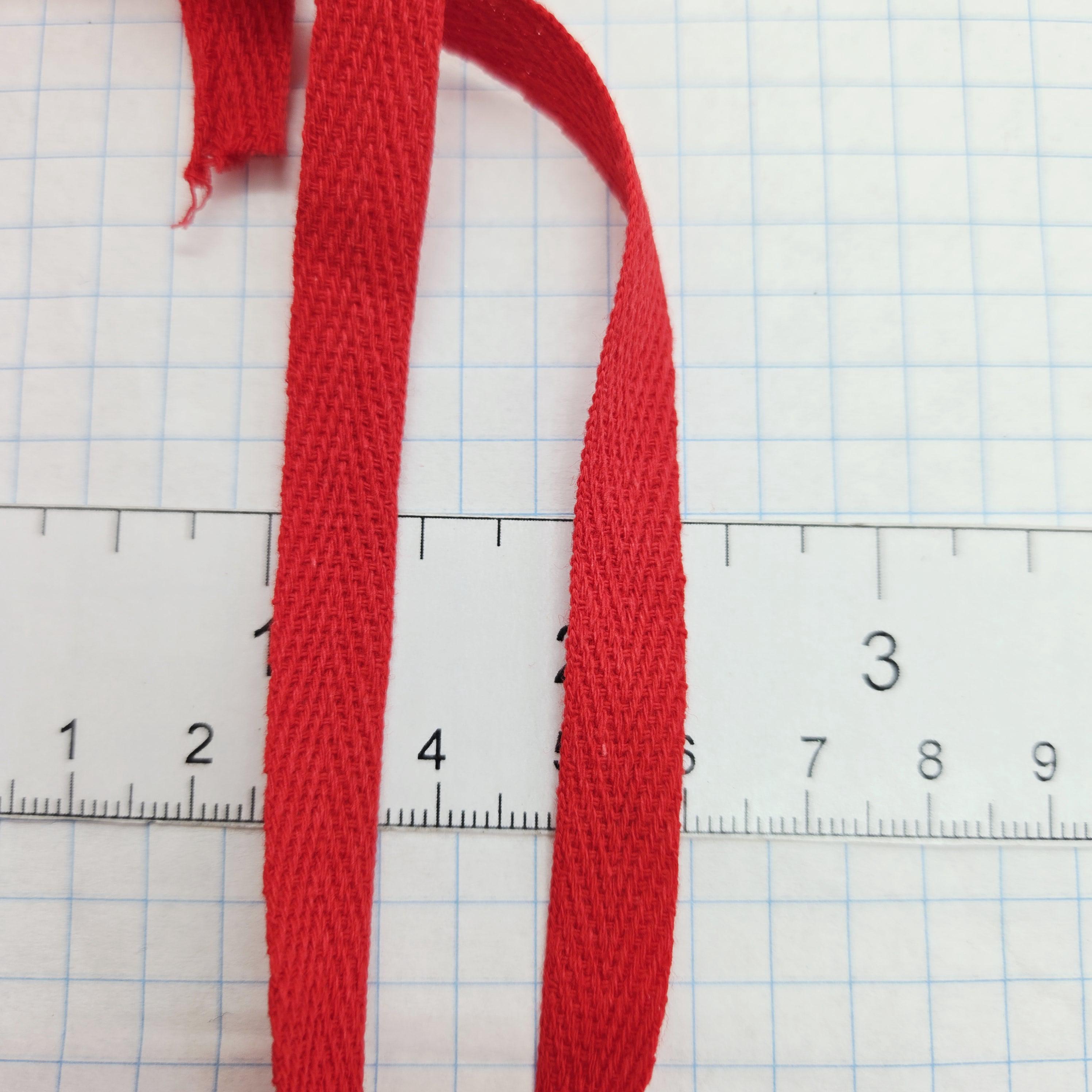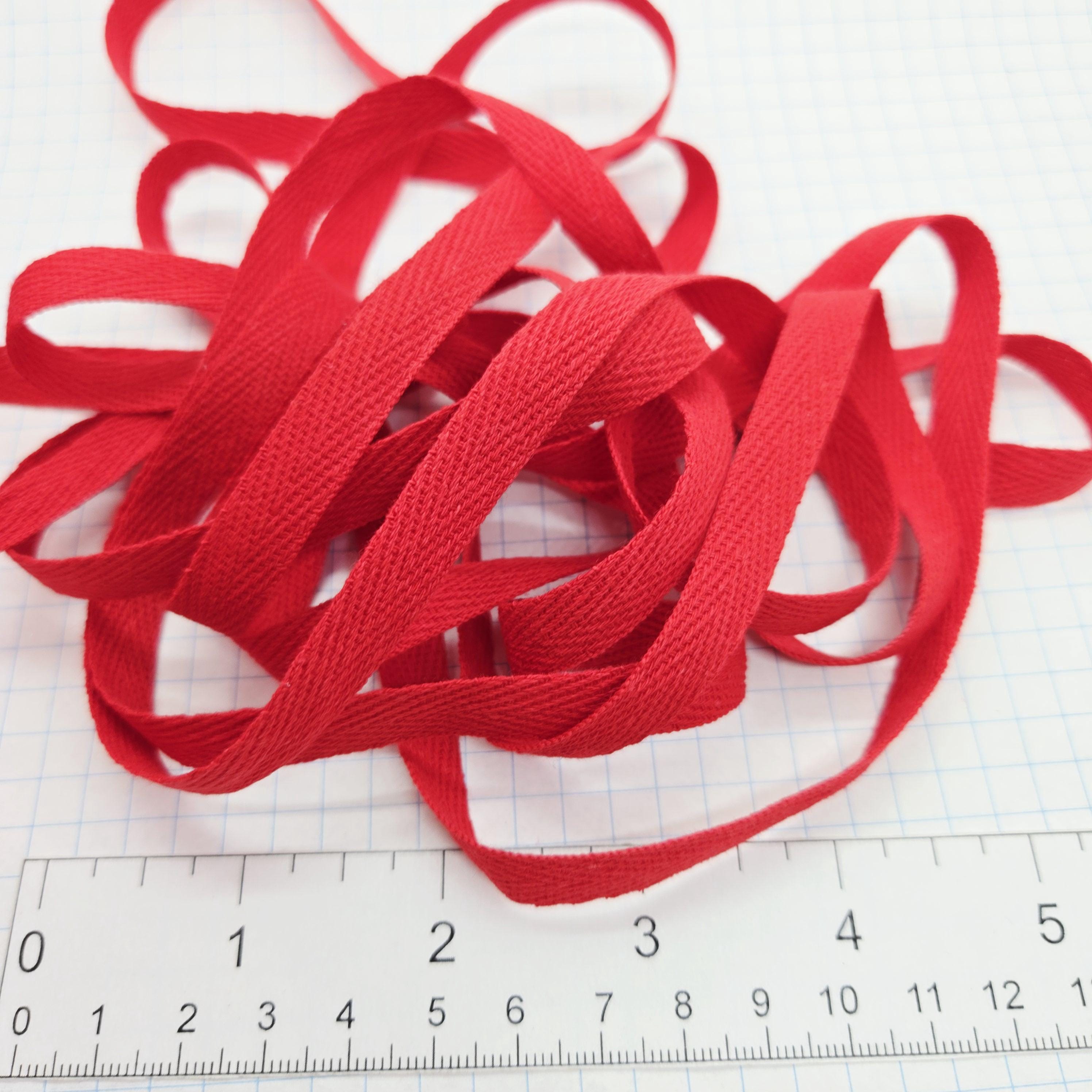 3/8 inch(approximately 10mm) cotton twill ribbon in red. Great for wrapping packages, using for tags or decorating scrapbook pages.