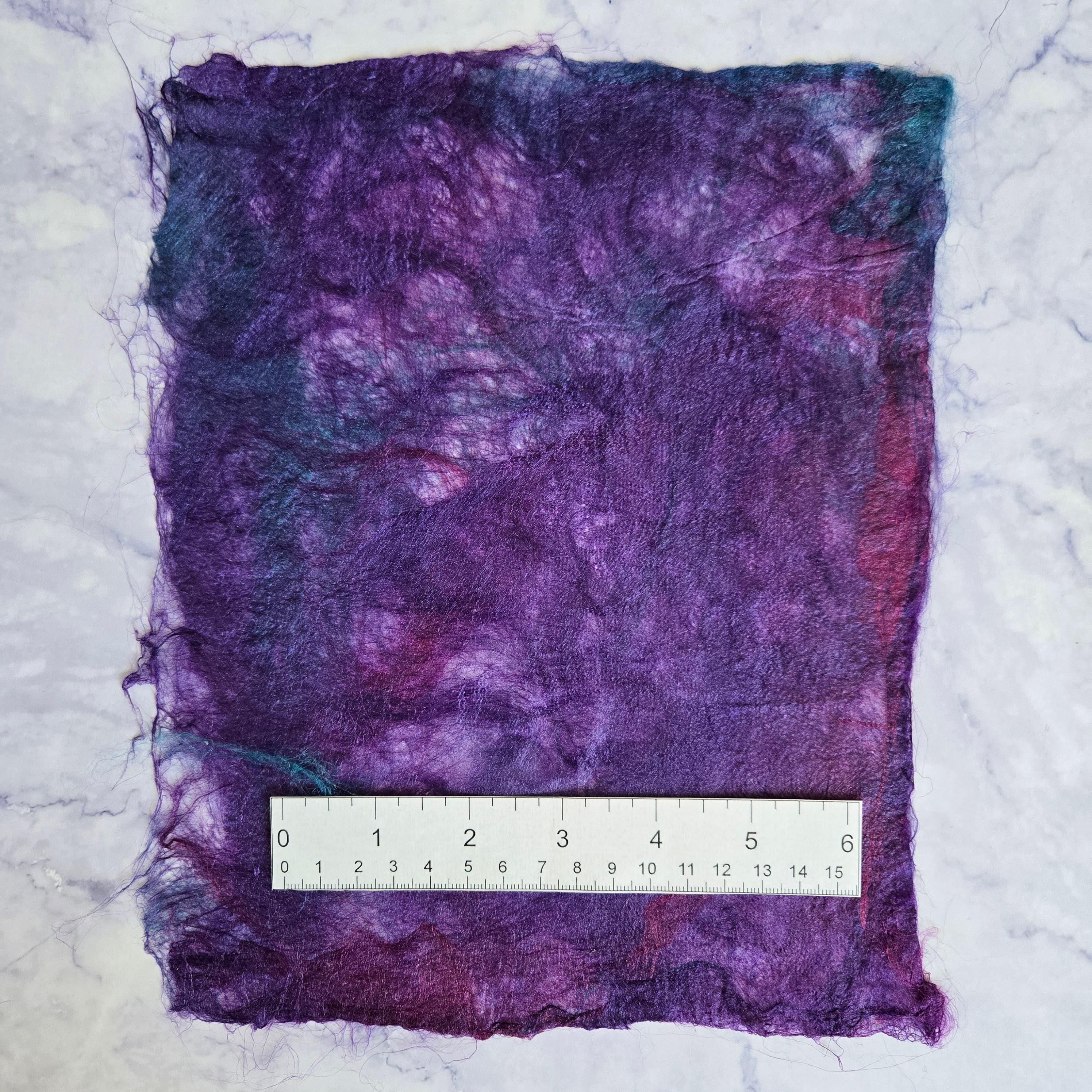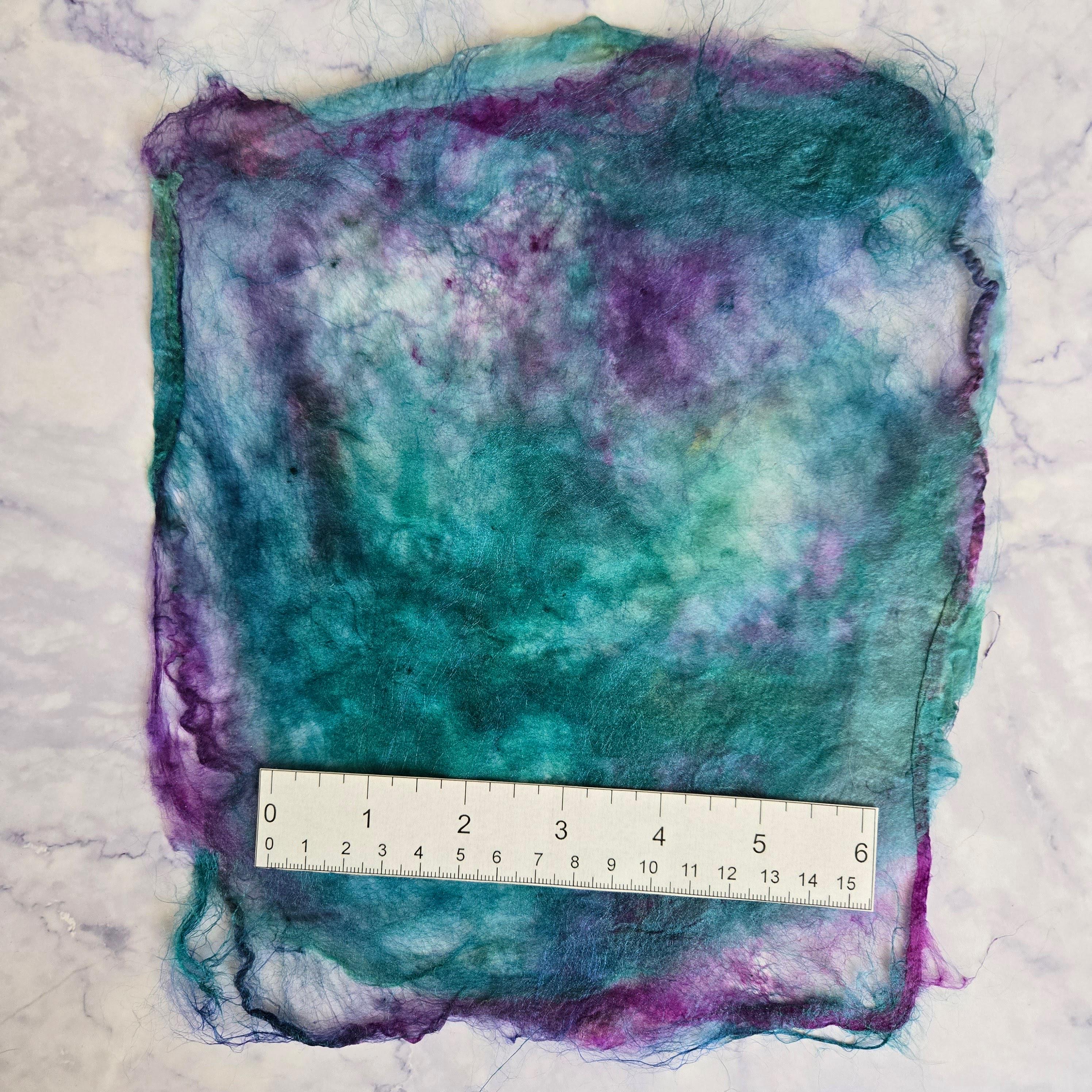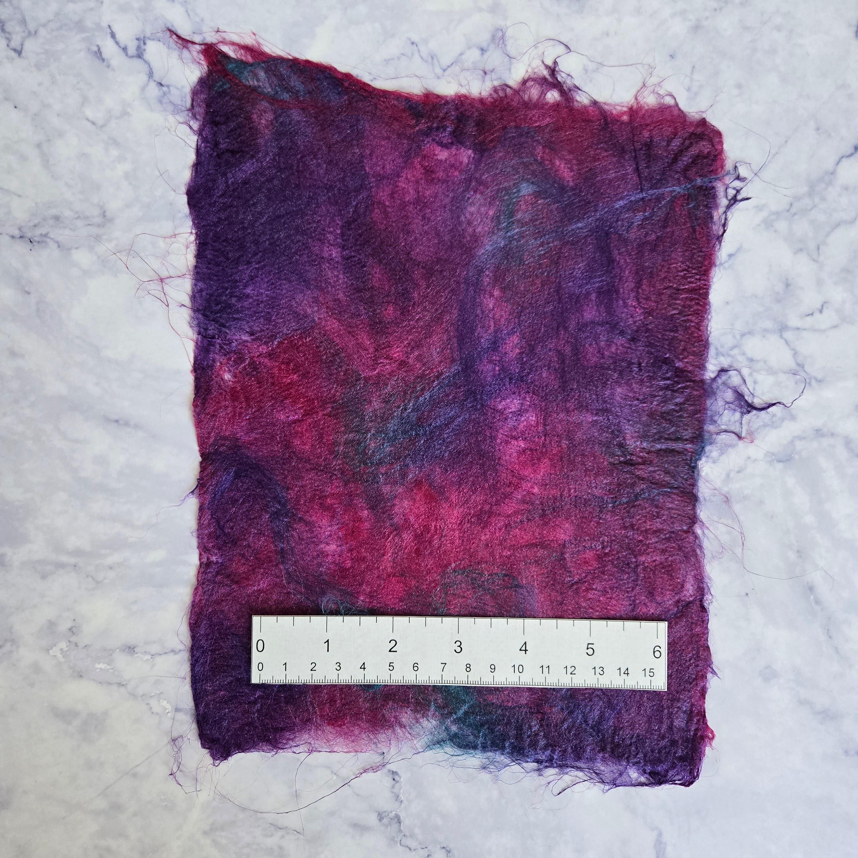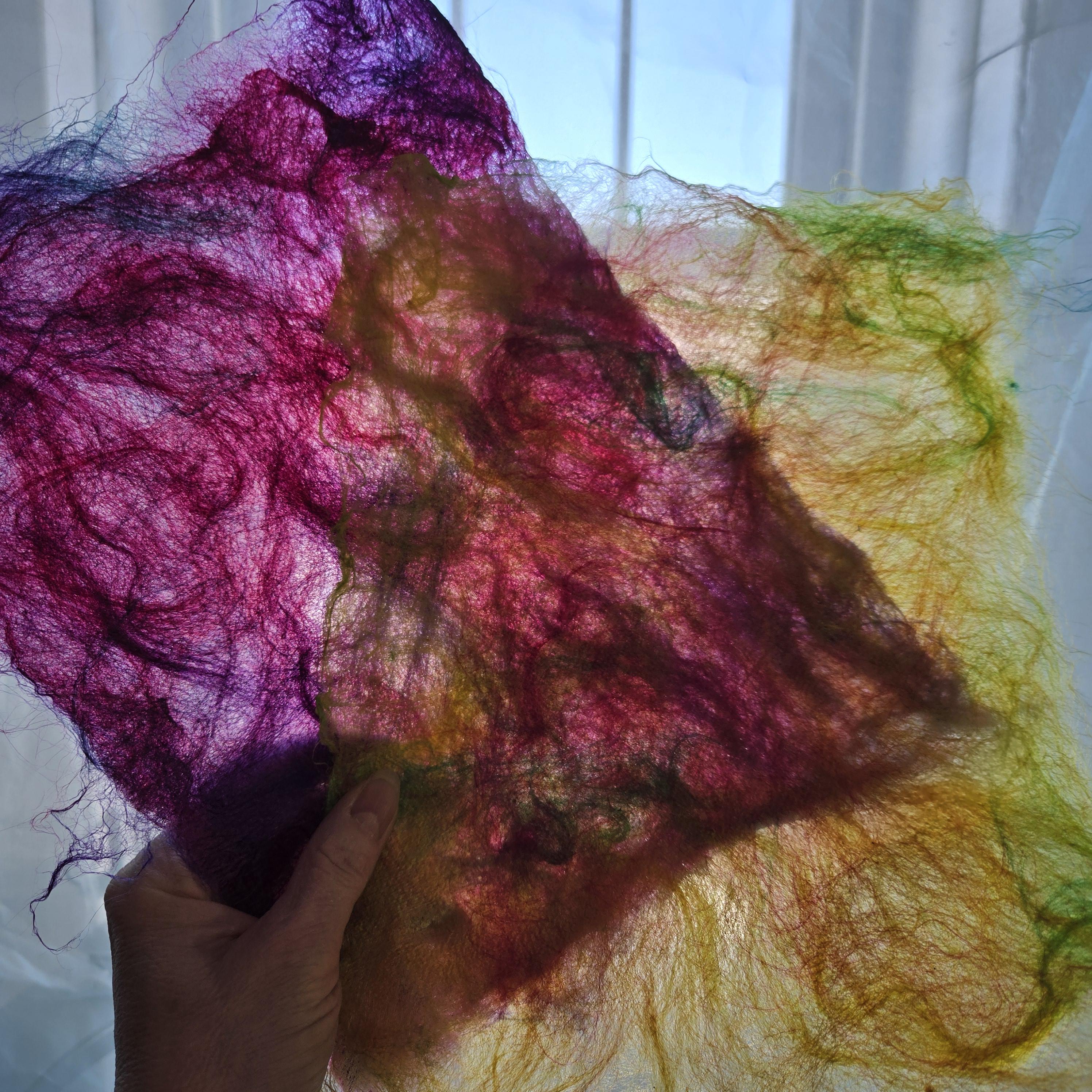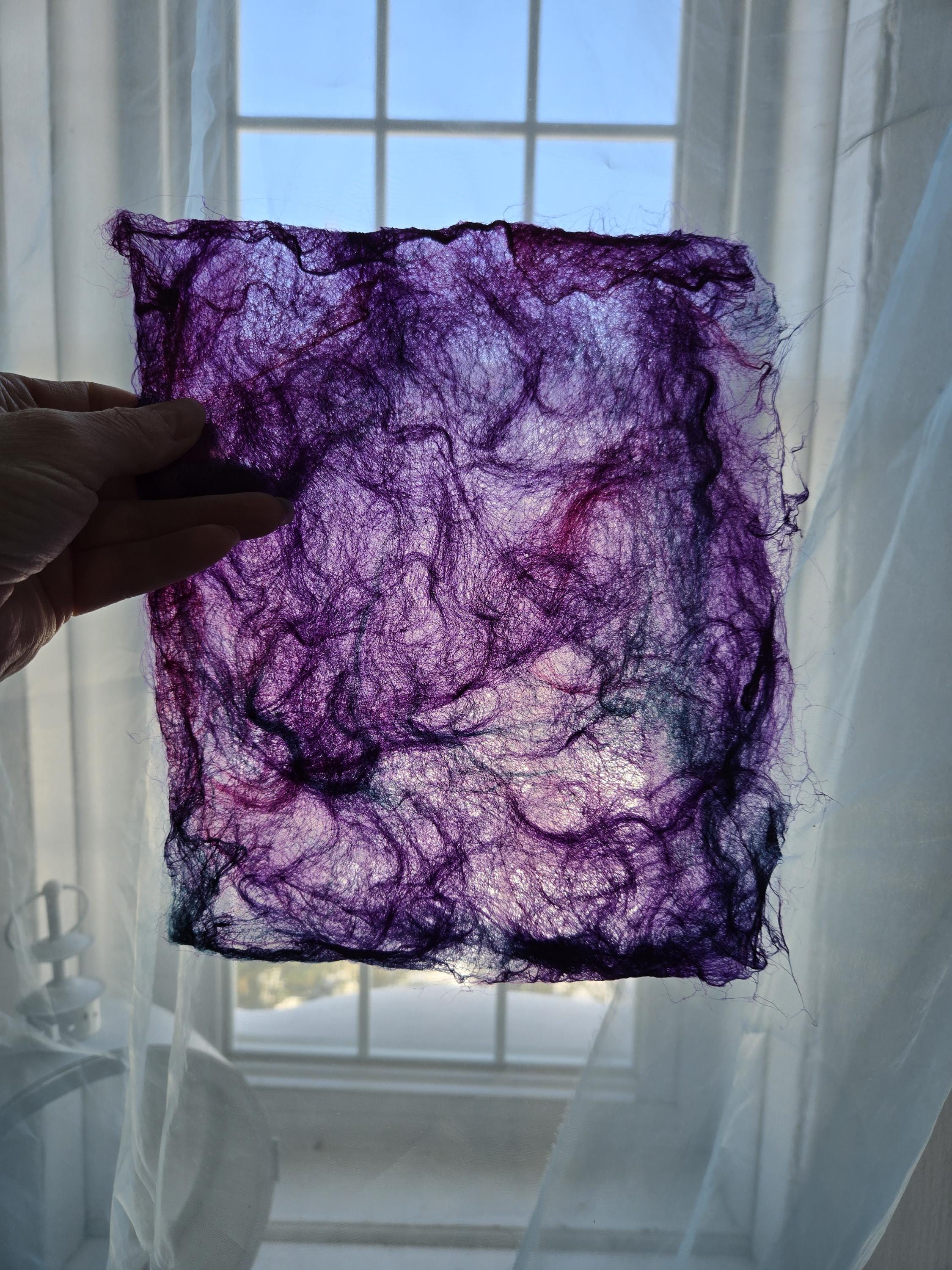 Fusion paper is made using silk fibers arranged on a plastic surface, the fibers are glued together using acrylic medium, this gives it a sheer but strong surface that can be used in paper arts or fiber arts. Sheets can be used as is, stitched on, glued to or cut up as needed.