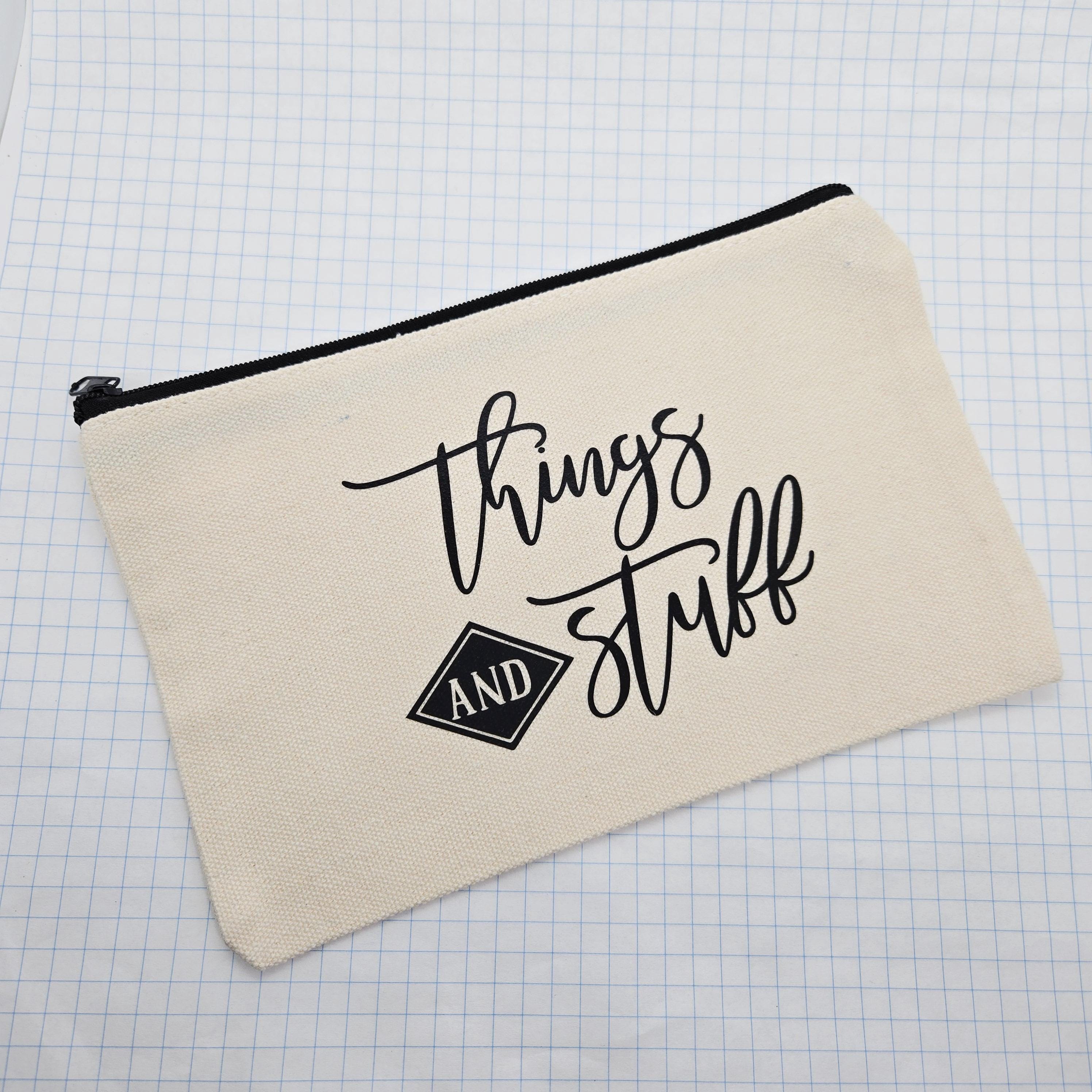 Fabric: Cotton, zipper, vinyl lettering