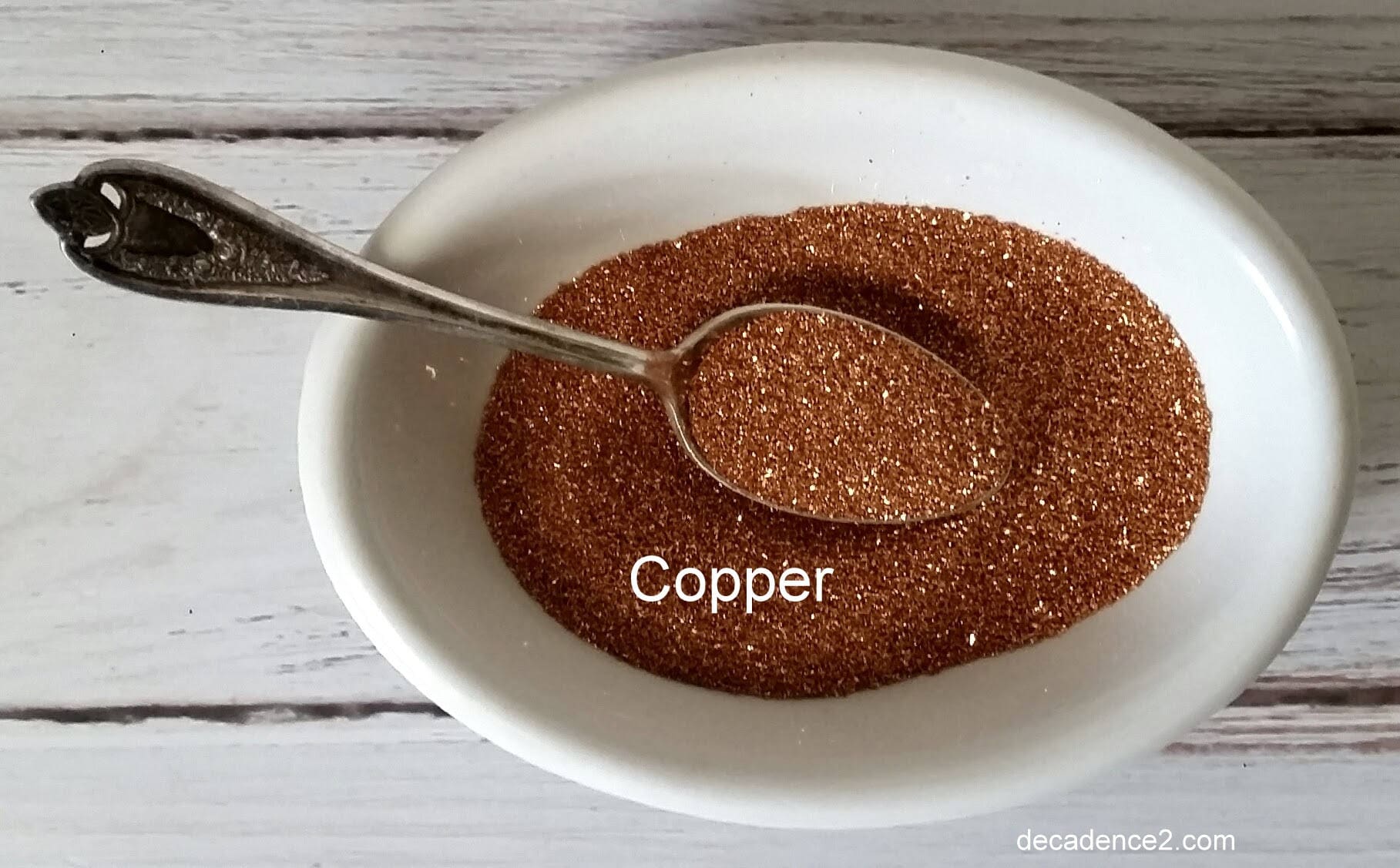 1/2 oz of finely crushed Copper German Glass Glitter. What the pros use, once you've tried the real glass glitter, you'll be spoiled. :-)