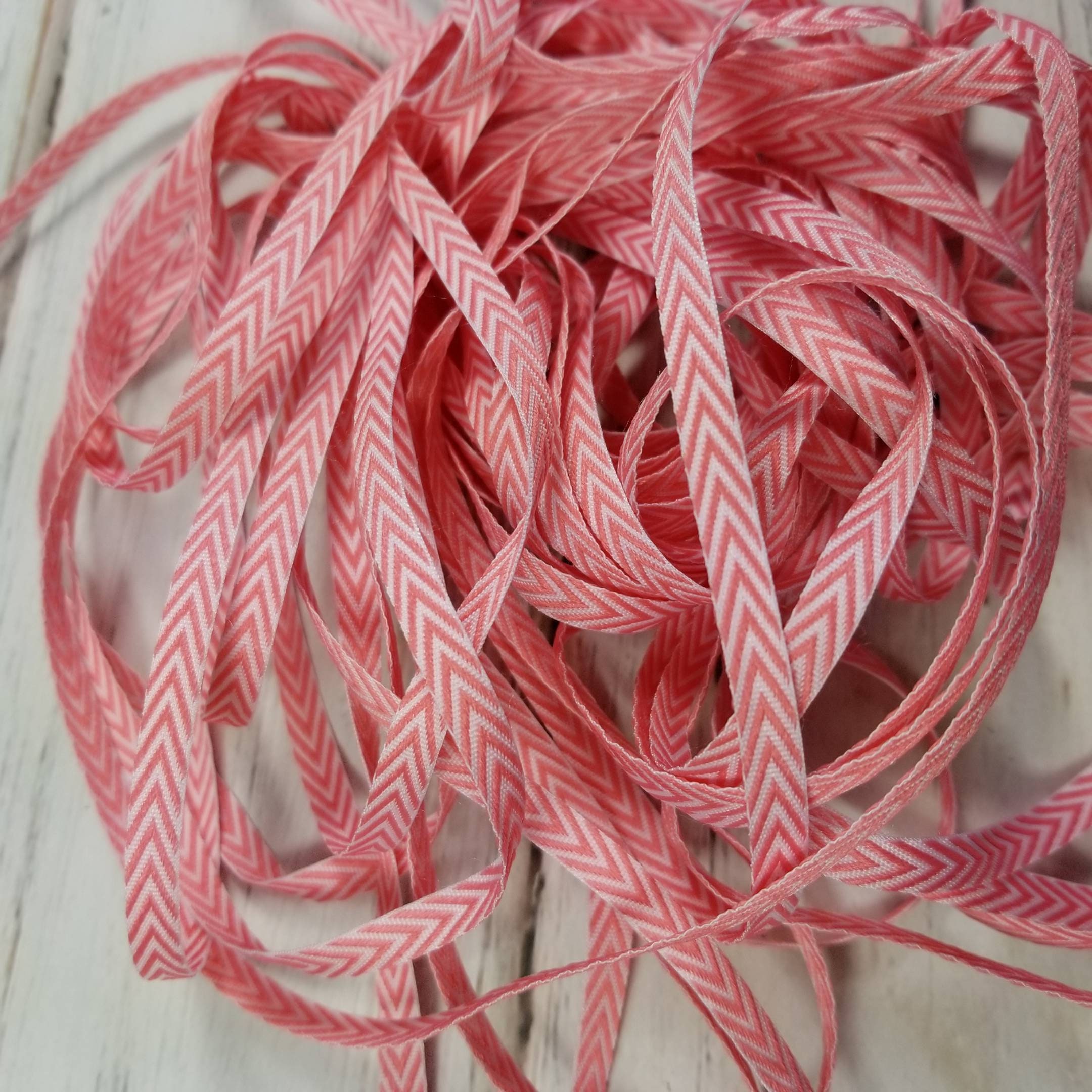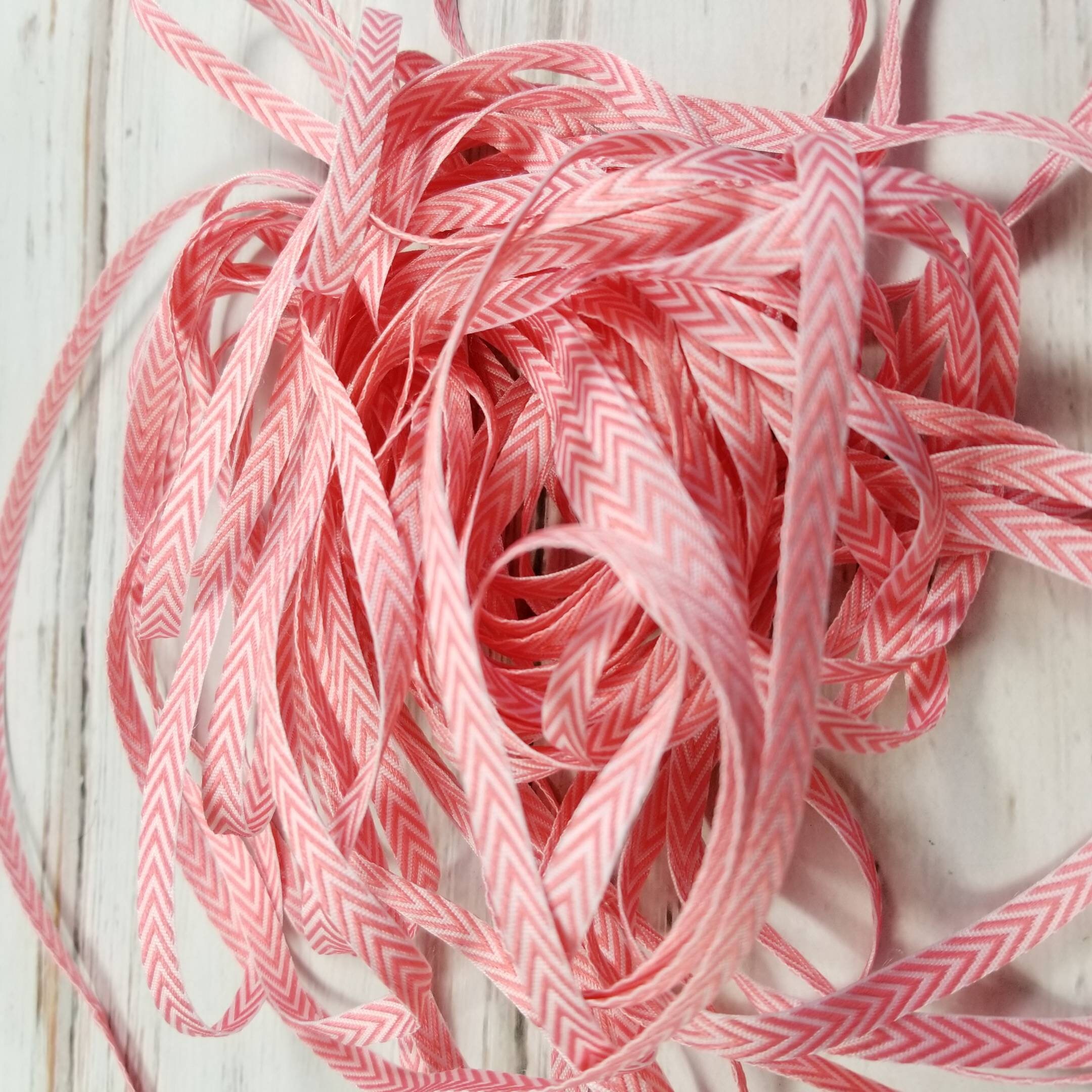 5 Yard Package pink and white chevron polyester twill tape ribbon, 1/4 inch