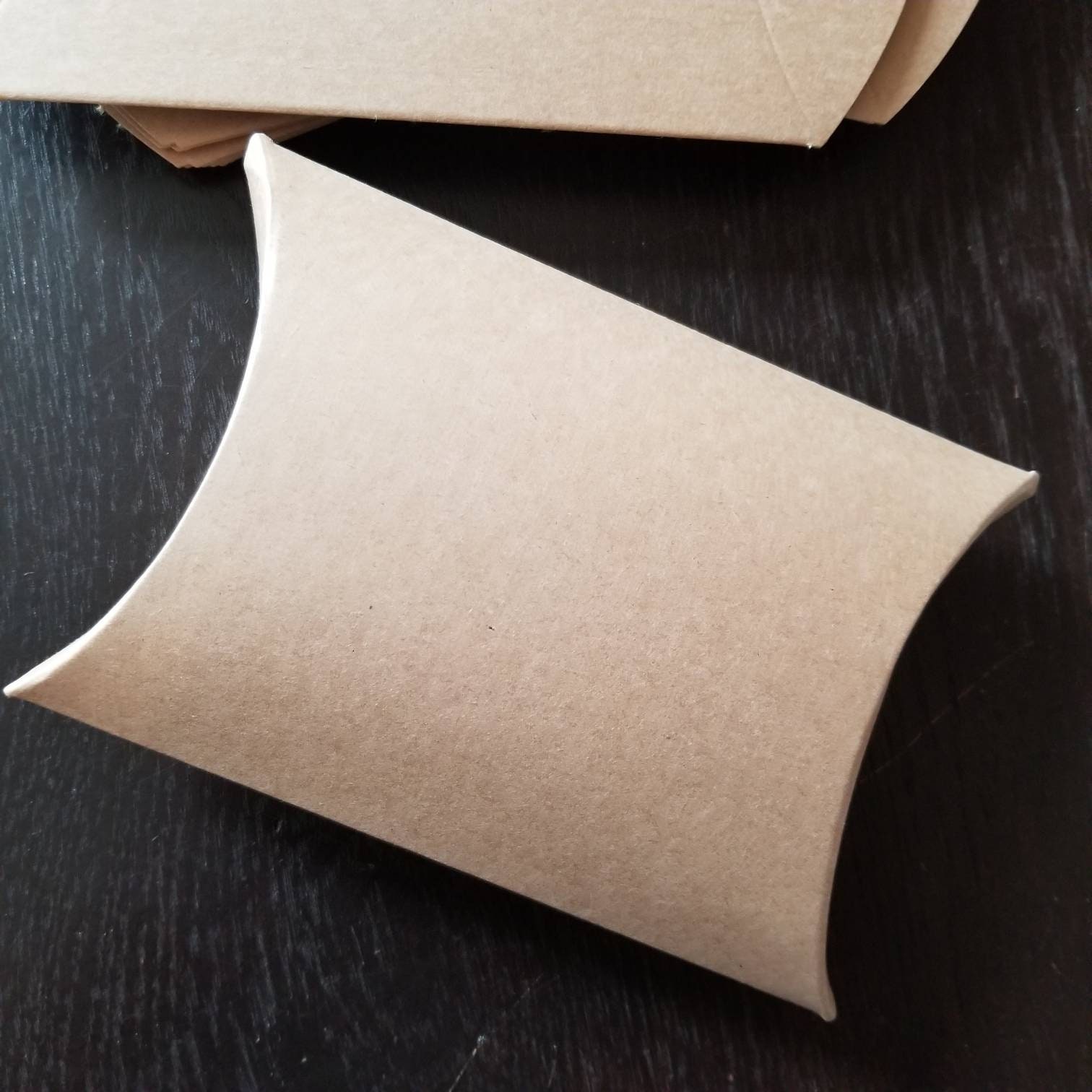 pillow boxes fold to form a box approximately 6" long and 4.5" wide,