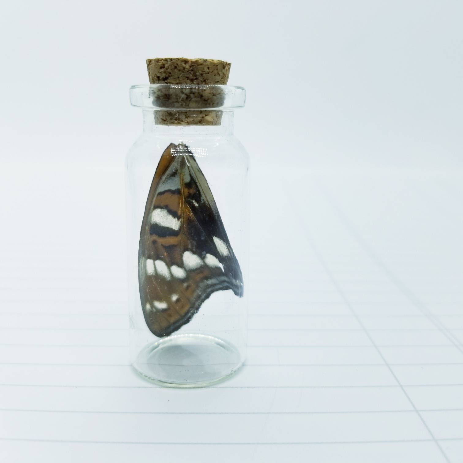 Black, orange and white butterfly wing in jar, Natural History, Cabinet of Curiosities, Collections.