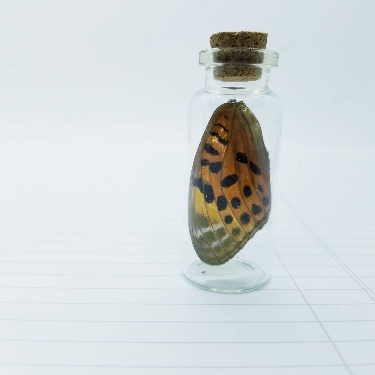 Orange and Black butterfly wing in jar, Natural History, Cabinet of Curiosities, Collections.