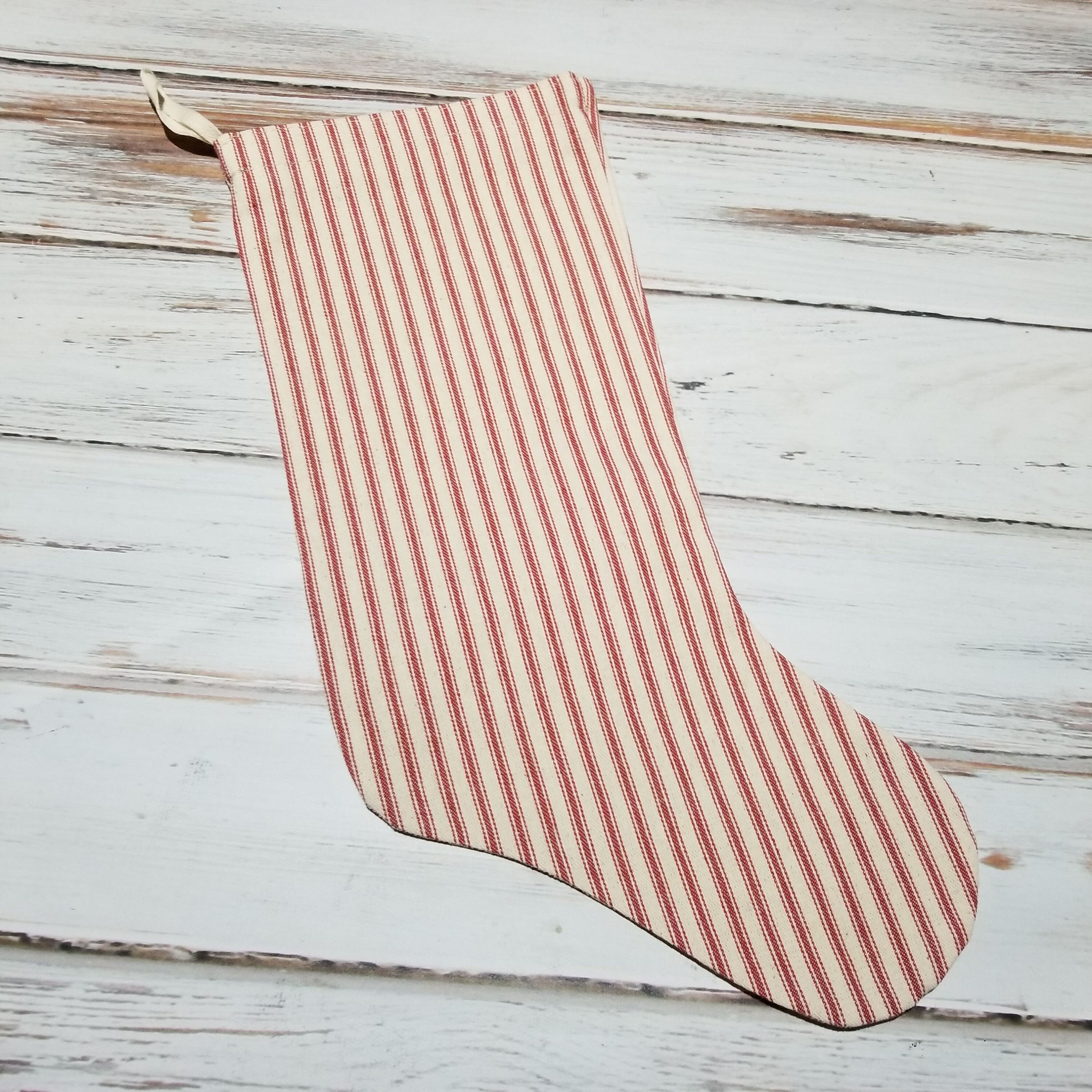 Add the perfect oldfashioned touch of Christmas past to your decor, handmade striped cotton twill ticking fabric Christmas stockings.