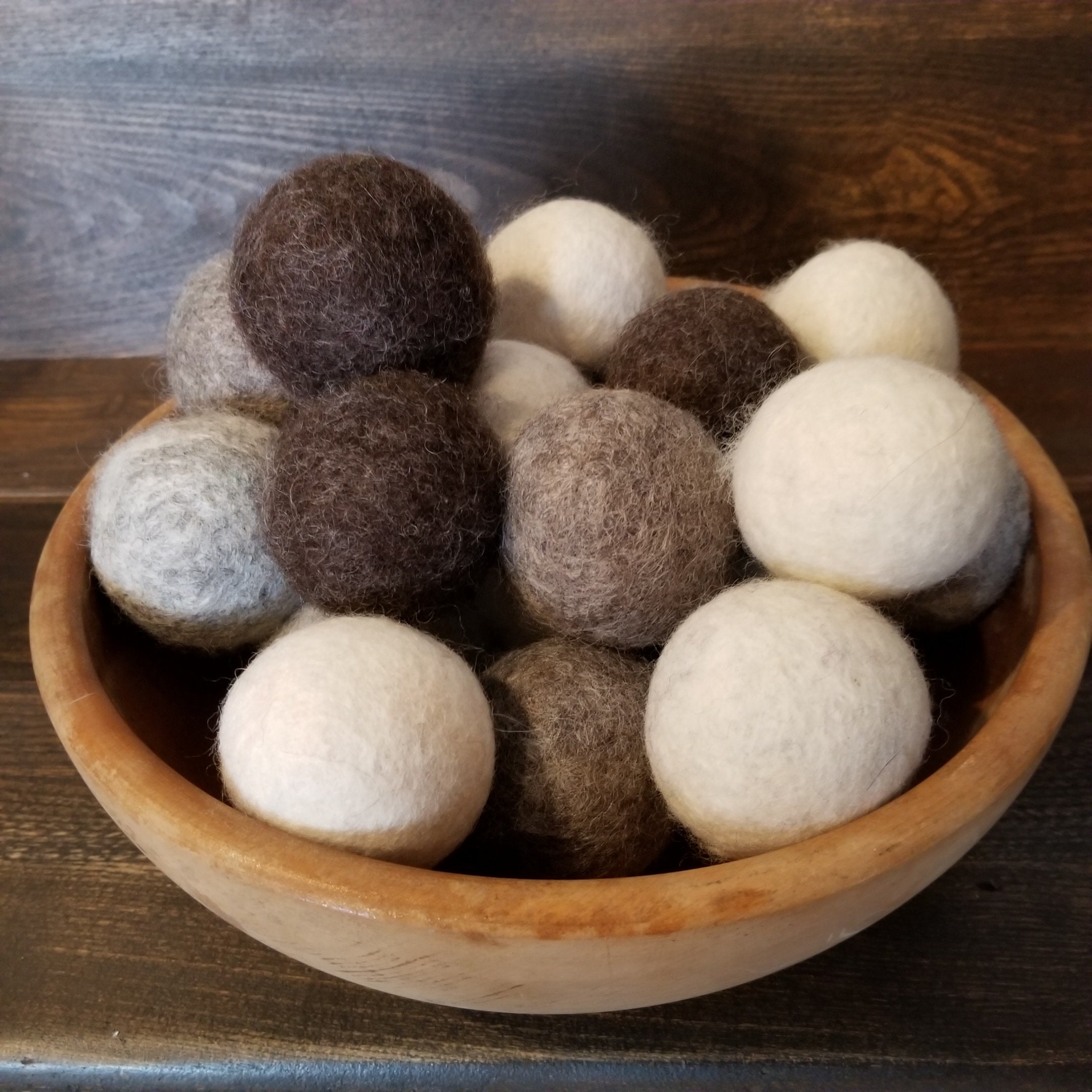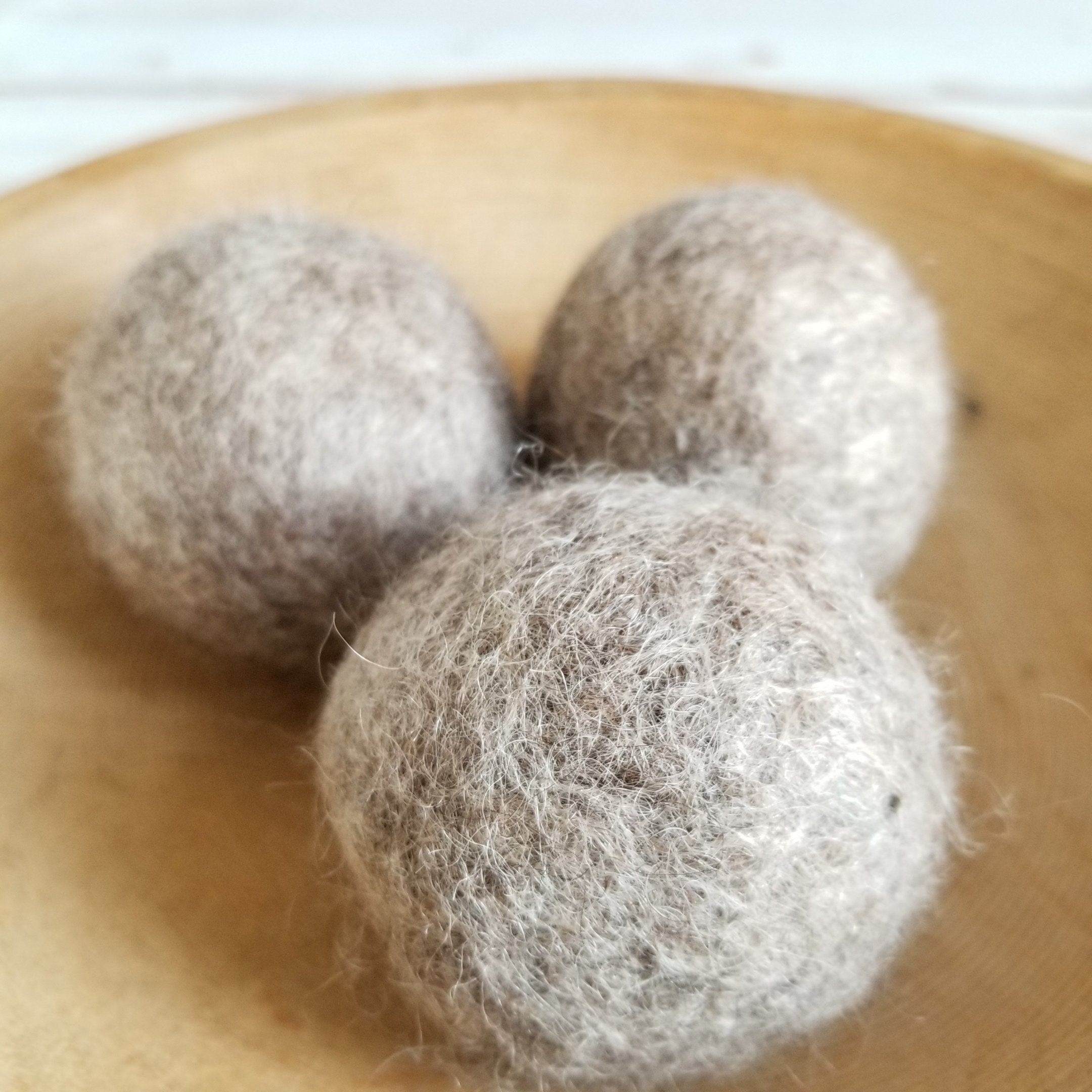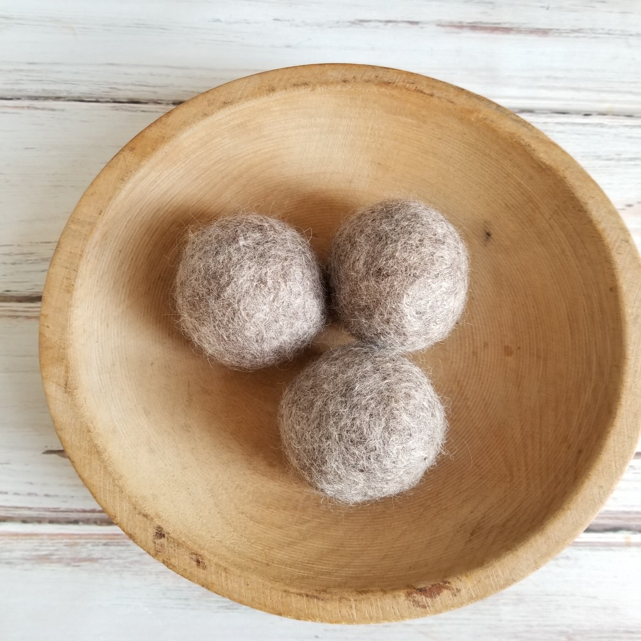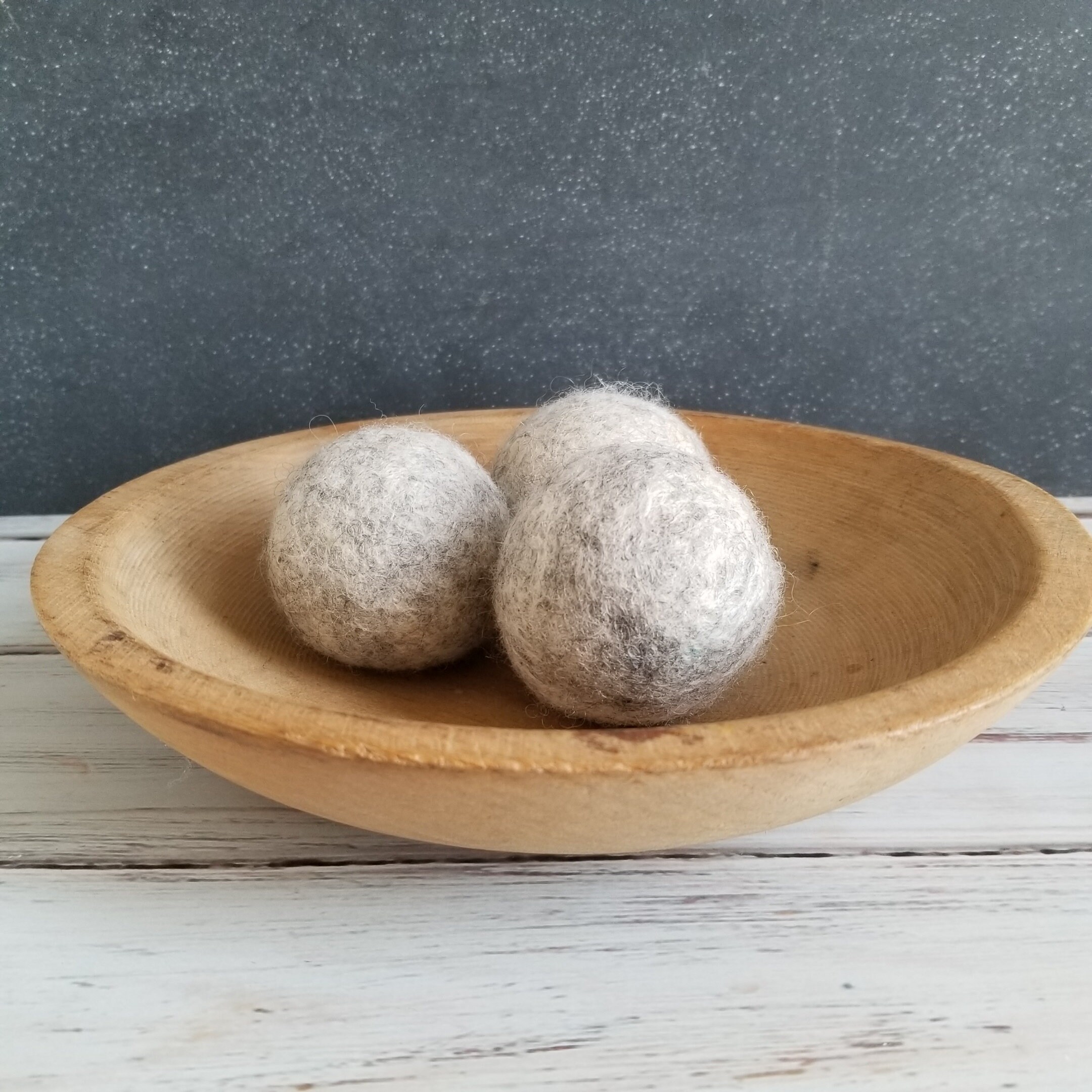 Set of 3 Felted Wool Dryer Balls- Felted to a medium density, approximately 2 1/2 inches in diameter.